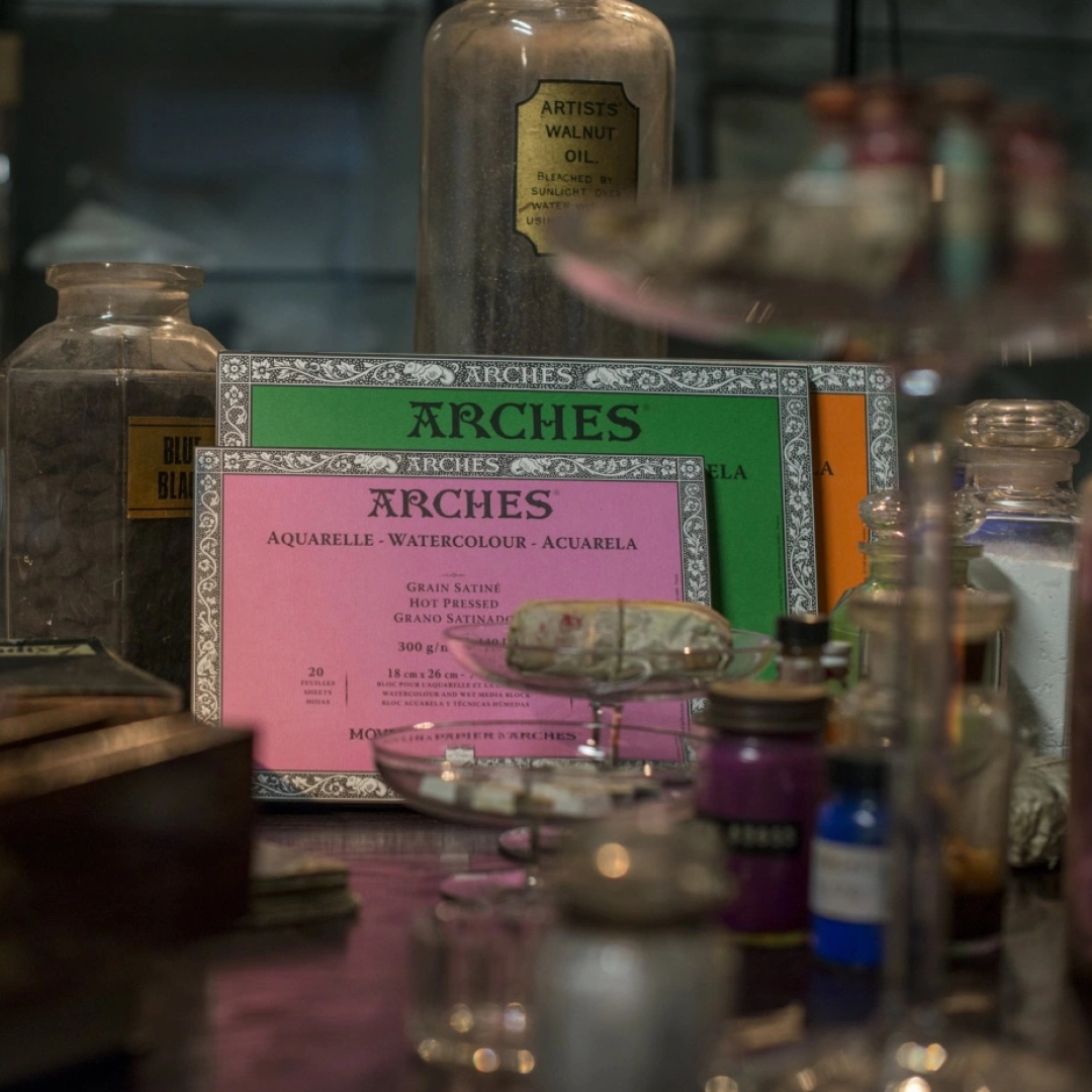 Achter dit papier staat de historische Franse papierfabriek Arches, opgericht in 1492. Met eeuwenlange ambachtelijke traditie is Arches wereldwijd een vertrouwde keuze voor kunstenaars die betrouwbaar en tijdloos aquarelpapier zoeken.