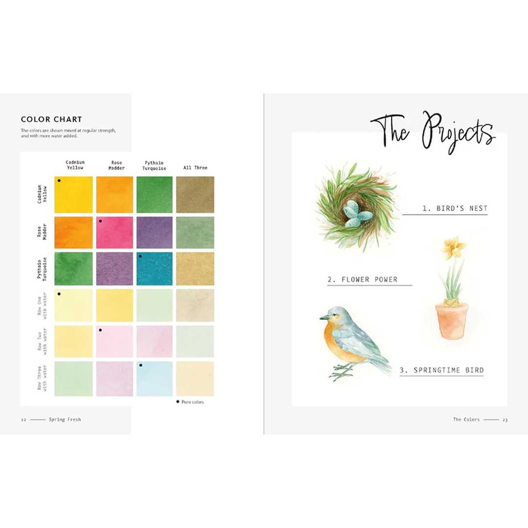 Kunstenaar Katie Putt begeleidt met eenvoudige stapsgewijze instructies naar 30 kleine meesterwerken. Elk van de 10 hoofdstukken in dit boek is gebaseerd op een uniek drie-kleurenpalet, van heldere juweeltinten tot rustige, Scandinavisch geïnspireerde kleuren. Om te beginnen zijn slechts drie ‘pure’ verfkleuren nodig. Hiermee leer je een verrassend breed scala aan tinten te mengen – alle kleuren die nodig zijn om de drie eenvoudig te volgen aquarelprojecten in elk hoofdstuk te voltooien, variërend van dieren, bloemen en planten tot gebak en meer.