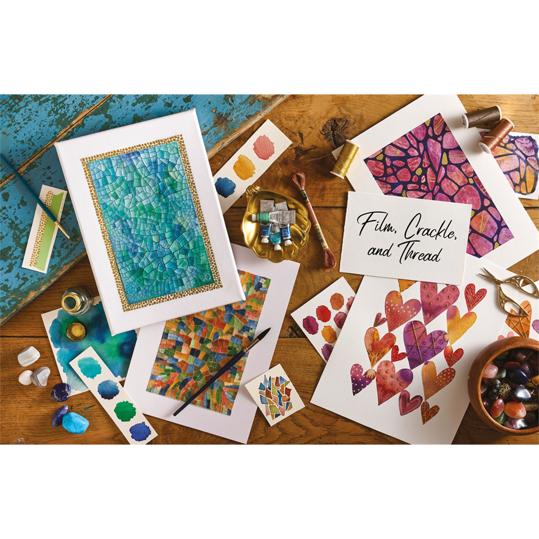 Ga met de stroom mee: Laat je vallen in het proces, laat de natuurlijke aquarel vlekken en plassen vormen om je compositie te helpen opbouwen, en voeg daarna mixed media-versieringen toe om het naar het volgende niveau te tillen.