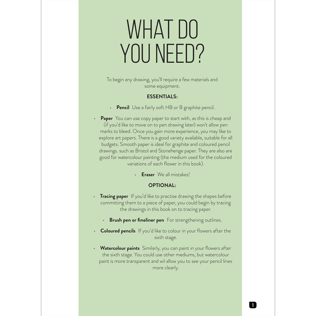 Of je nu houdt van de ingetogen schoonheid van een eenvoudige margriet of de kleurrijke pracht van een flamingobloem, in dit boek vind je gegarandeerd een bloem die je niet kunt weerstaan en die je meteen zin geeft om je potlood te pakken en te gaan tekenen! Je vindt er alledaagse tuinbloemen zoals rozen en tulpen, tere wilde soorten zoals sleutelbloemen en boshyacinten, en ook een reeks exotische bloemen als je iets anders wilt proberen.