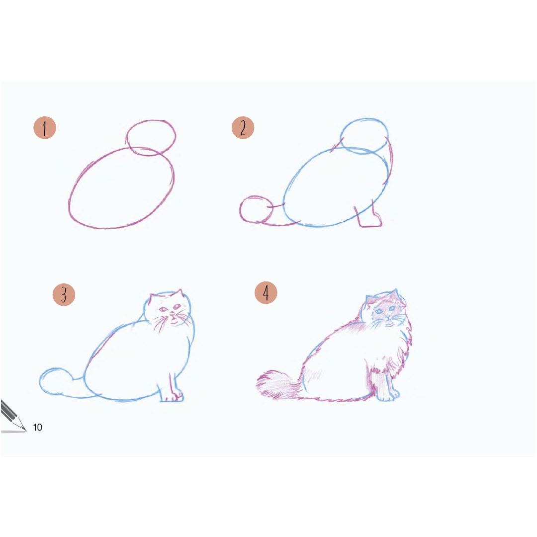 Elke schattige kat wordt opgebouwd in maximaal 6 eenvoudige stappen, van een ruwe schets van de basisvormen tot een afgewerkt, ingekleurd portret. In het gemakkelijk te volgen liggende formaat springen de katten tot leven op de pagina’s, wat dit boek perfect maakt voor beginnende kunstenaars van alle leeftijden: van kinderen die creatieve naschoolse projecten zoeken tot volwassenen die levensechte portretten van hun huisdieren willen maken.