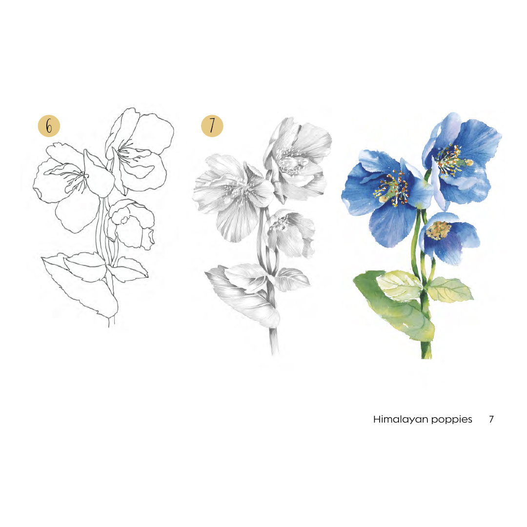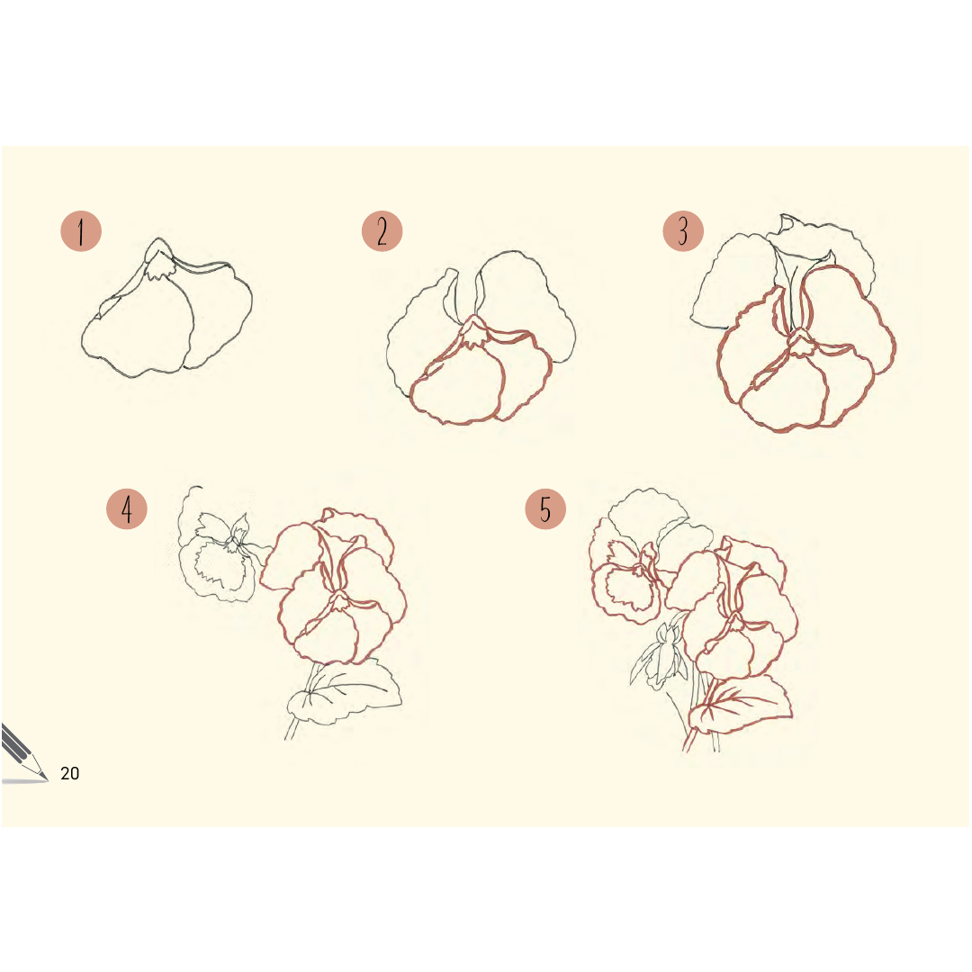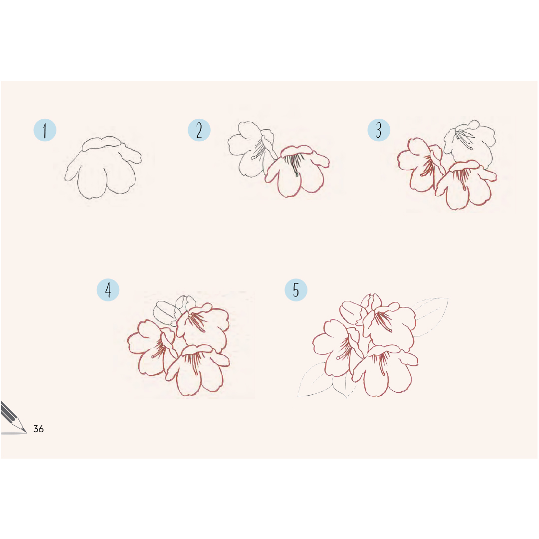Dankzij het gemakkelijk te volgen liggende formaat kun je zien hoe de bloemen tot bloei komen op de pagina’s en ze vervolgens zelf namaken op papier of in je schetsboek.