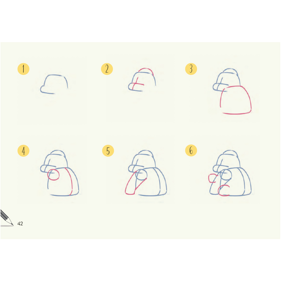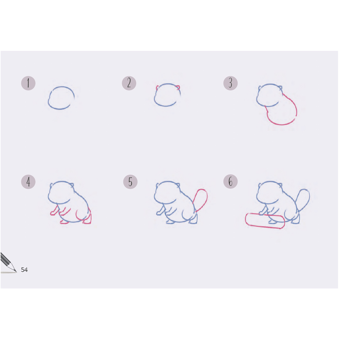 Dankzij het gemakkelijk te volgen liggende formaat kun je zien hoe de stappen zich over de pagina opbouwen en ze vervolgens eenvoudig zelf namaken… Pak gewoon je favoriete pennen en begin met tekenen!