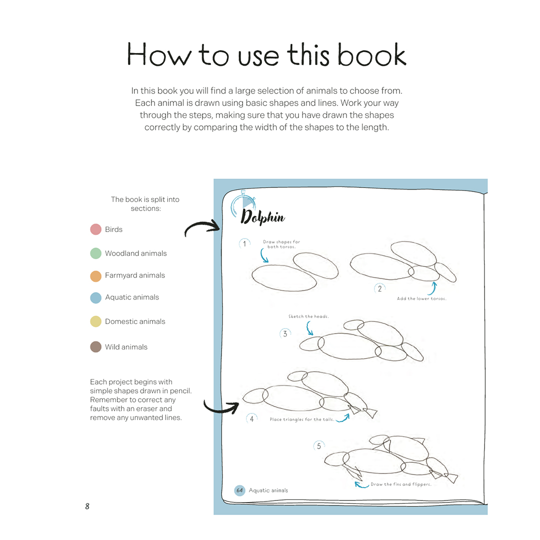 De bekroonde kunstenaar Jonathan Newey gebruikt eenvoudige vormen die stap voor stap worden opgebouwd, wat gegarandeerd je zelfvertrouwen en tekenvaardigheid vergroot, zodat je snel en gemakkelijk 50 verschillende dieren van over de hele wereld kunt schetsen, waaronder: