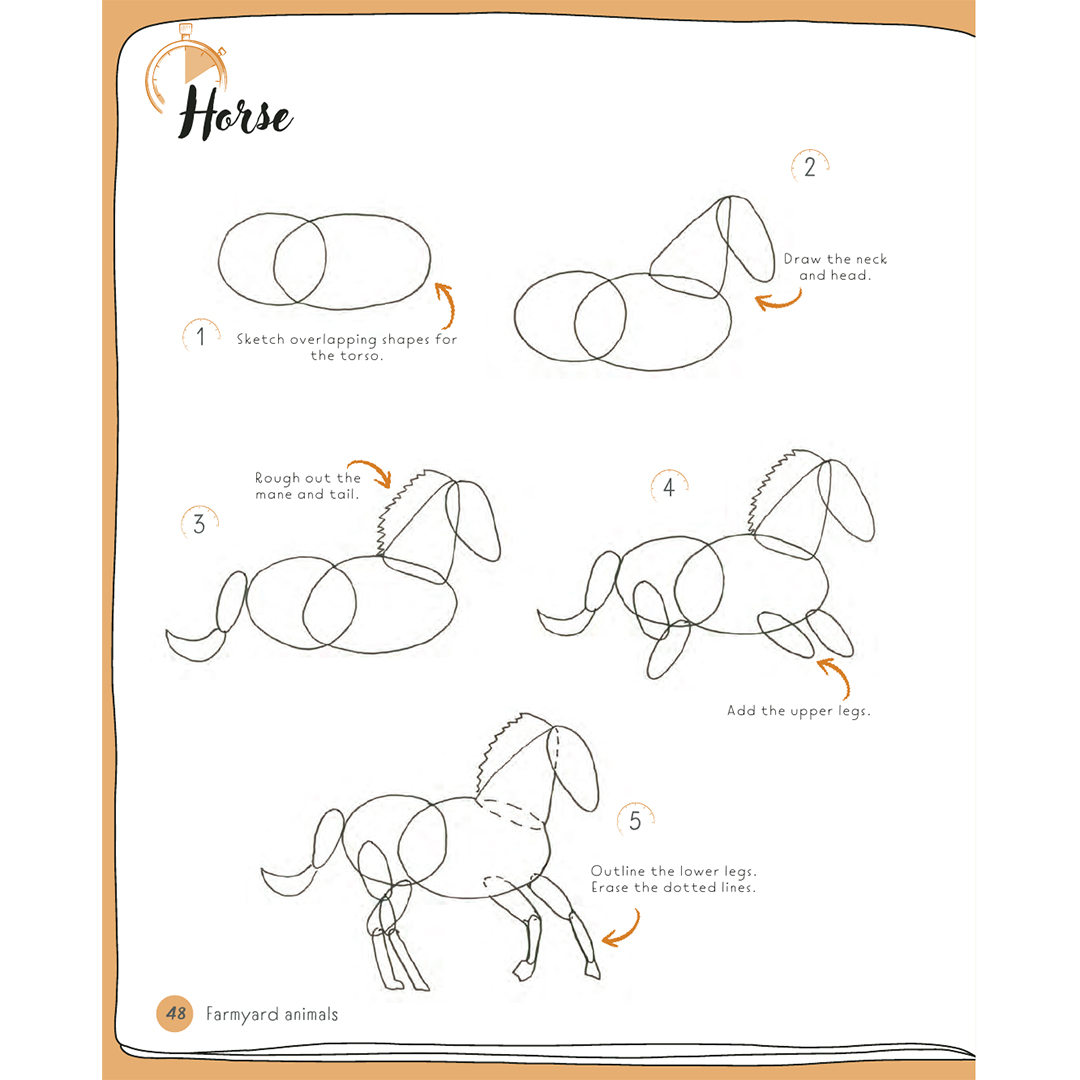 Teken allerlei wezens, groot en klein, waaronder bos-, boerderij-, water-, huis- en wilde dieren, met behulp van dit indrukwekkend eenvoudige en gemakkelijk te volgen boek.