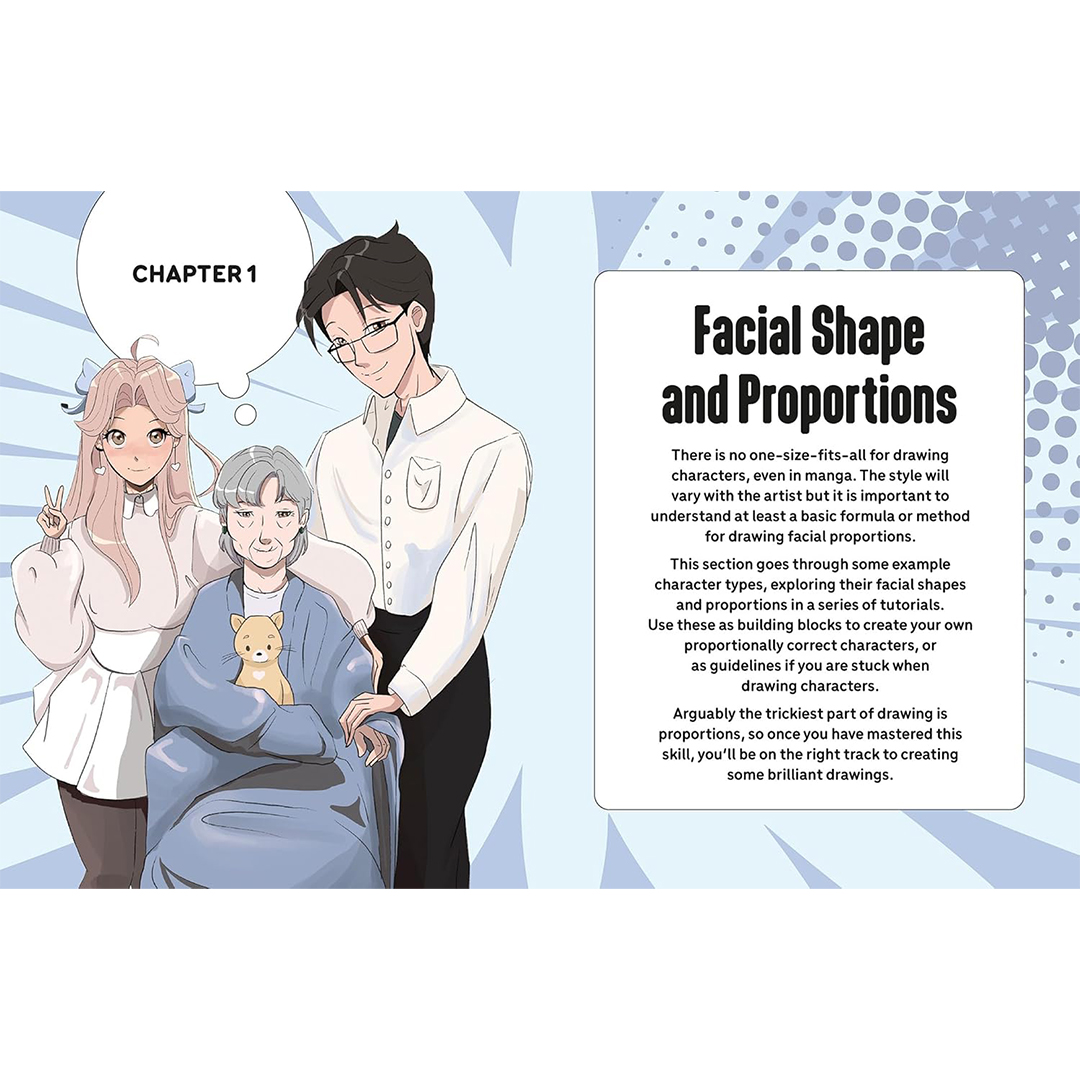 Een leeg vel kan vaak ontmoedigend zijn voor een beginnende kunstenaar. Dit boek bouwt de basis van manga-gezichten hoofdstuk voor hoofdstuk op, met stapsgewijze visuele instructies, aangevuld met speciaal ontworpen oefenpagina’s. Dit helpt de lezer om de eerste stappen te zetten en biedt ruimte en ondersteuning om te beginnen zonder de stress die gepaard gaat met het vullen van een leeg vel.