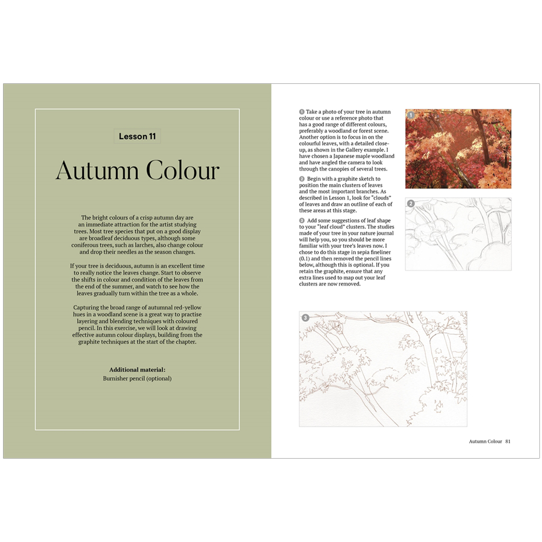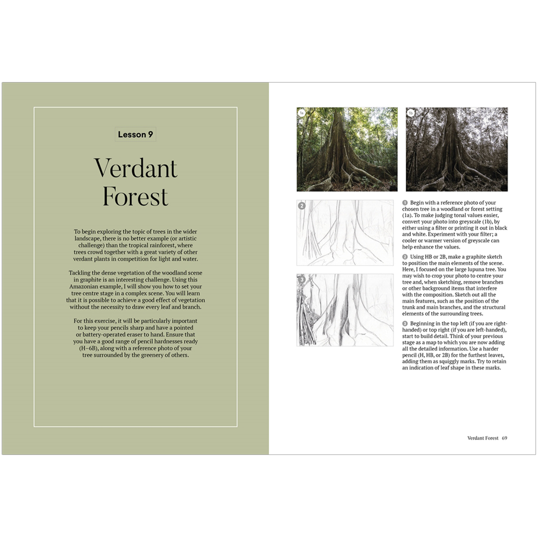 How to Draw a Tree laat je zien hoe je de structuur, het karakter en de schoonheid van bomen kunt vastleggen – van de kleinste vruchten tot de machtigste bossen.