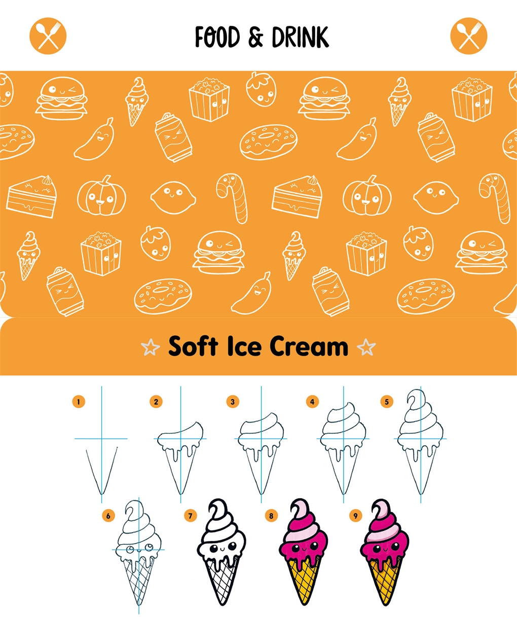 Leer de geheimen van Kawaii‑tekenen, van de juiste verhoudingen tot het creëren van een persoonlijkheid met verschillende gezichtsuitdrukkingen of het toevoegen van diepte met kleurlagen. Volg daarna 52 stap‑voor‑stap‑reeksen die je laten zien hoe je een groot aantal verschillende personages opbouwt – van simpele vormen tot meer details en kleuren. Elke reeks is volledig visueel, zonder instructies die je moet lezen, zodat je echt makkelijk je eigen Kawaii‑figuren kunt maken. Alles wat je nodig hebt is papier en een paar pennen!