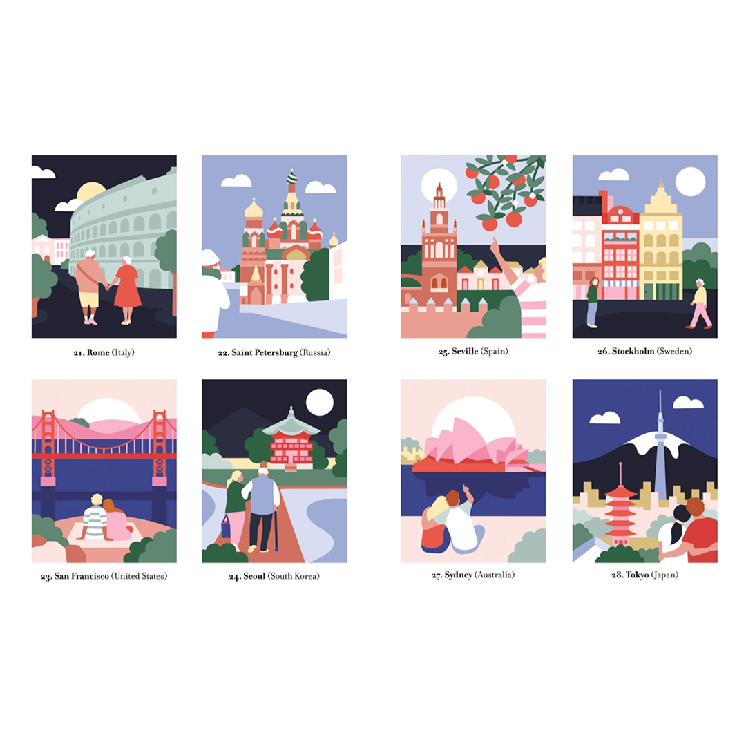 - Elk van de 30 frisse en moderne illustraties toont een populaire en kleurrijke stadsscène die verschijnt wanneer je op nummer kleurt.
