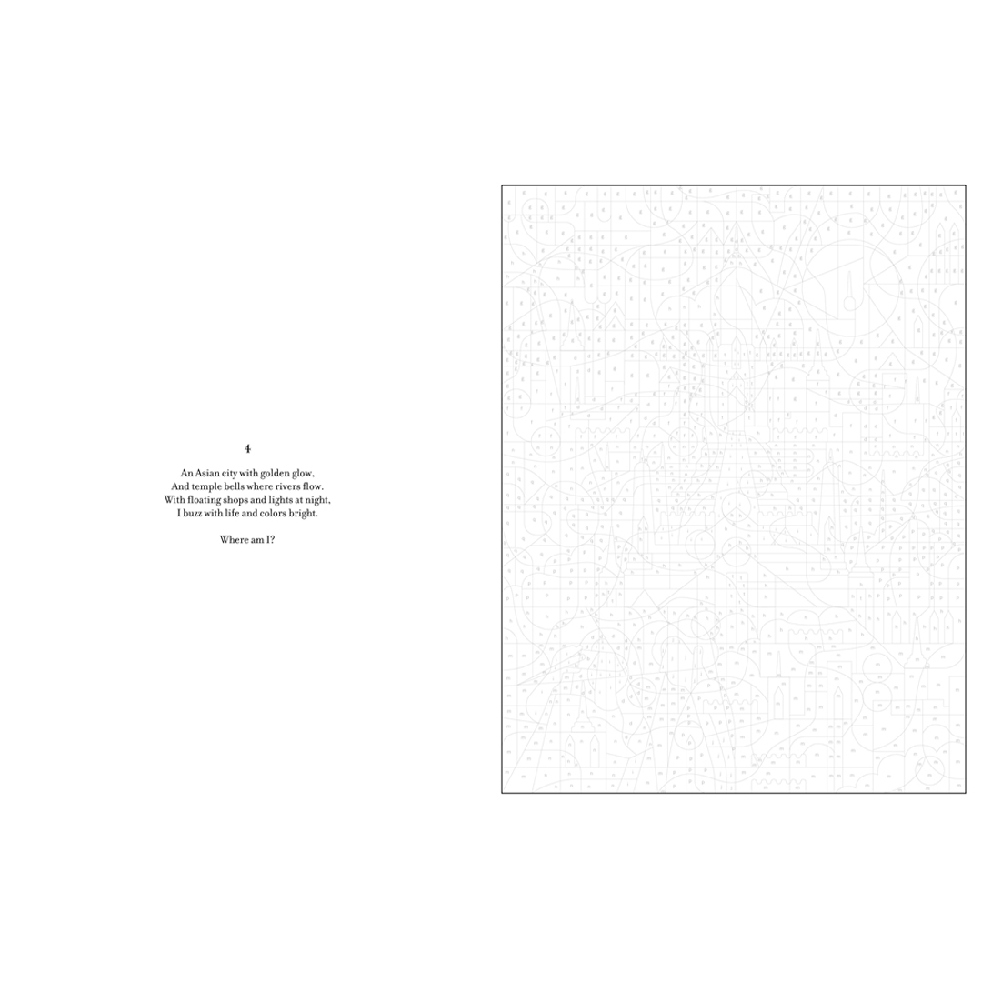 De nieuwste trend in kleuren, die het plezier van kleuren combineert met de spanning van een verrassing! Elk van de 30 moderne illustraties toont een bekend stadsicoon uit wereldsteden dat zichtbaar wordt wanneer je op nummer kleurt, plus een raadsel om over na te denken terwijl je het kunstwerk tot leven brengt. Een boeiende ontsnapping voor kleurliefhebbers van elk niveau.