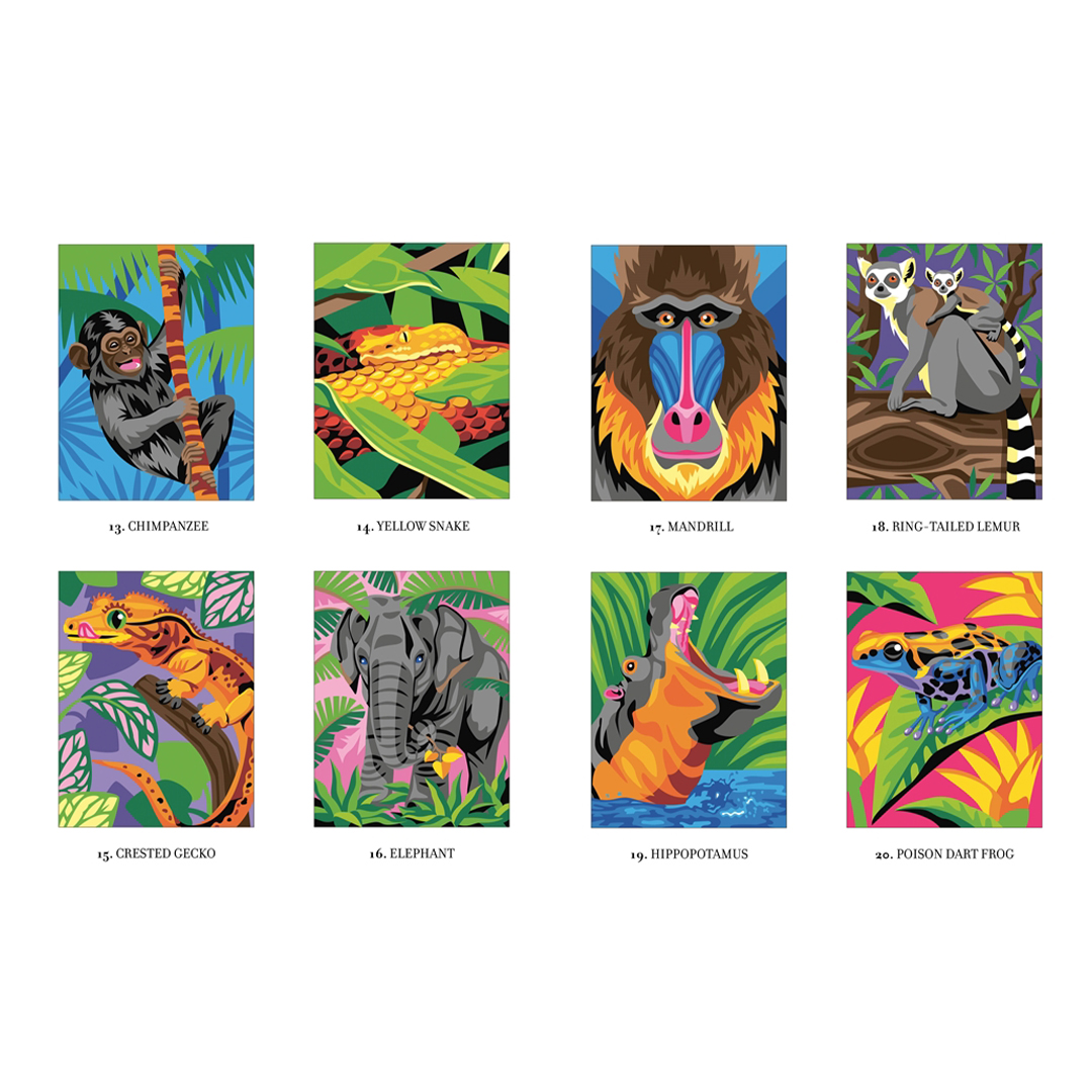 - Elk van de 30 frisse en moderne illustraties bevat een populair en kleurrijk wild dier dat zichtbaar wordt wanneer je op nummer kleurt.