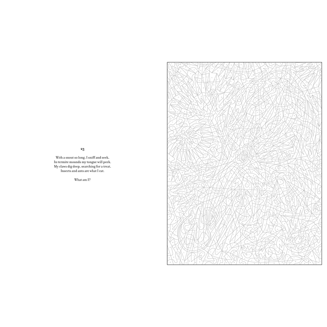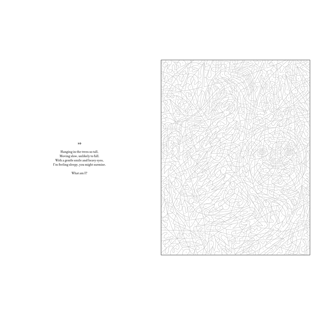 De nieuwste trend in kleuren, die het plezier van kleuren combineert met de spanning van een verrassing! Elk van de 30 moderne illustraties toont een populair wild dier dat verschijnt wanneer je op nummer kleurt, plus een raadsel om over na te denken terwijl je het kunstwerk tot leven brengt. Een boeiende ontsnapping voor kleurliefhebbers van elk niveau.