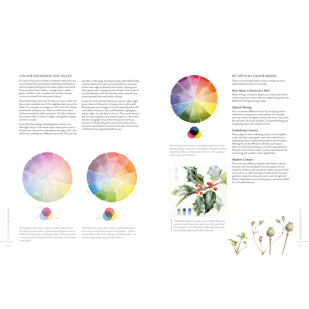 In dit uitgebreide boek, vol stap-voor-stap-instructies, deelt Dianne royaal haar kennis over het kiezen van het perfecte schetsboek (of zelfs het maken van je eigen boek met eenvoudige boekbindtechnieken), tot aan de diepgaande ontwikkeling van schetsboekpagina’s, met aandacht voor inhoud en compositie, welke delen van de plant je moet opnemen, hoe je met verschillende onderwerpen omgaat en hoe je je werk tot leven brengt met eenvoudige aquareltechnieken.