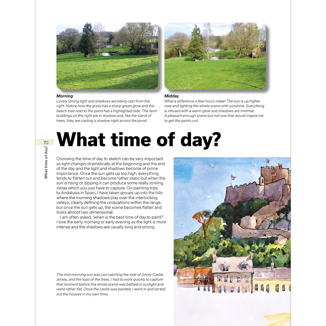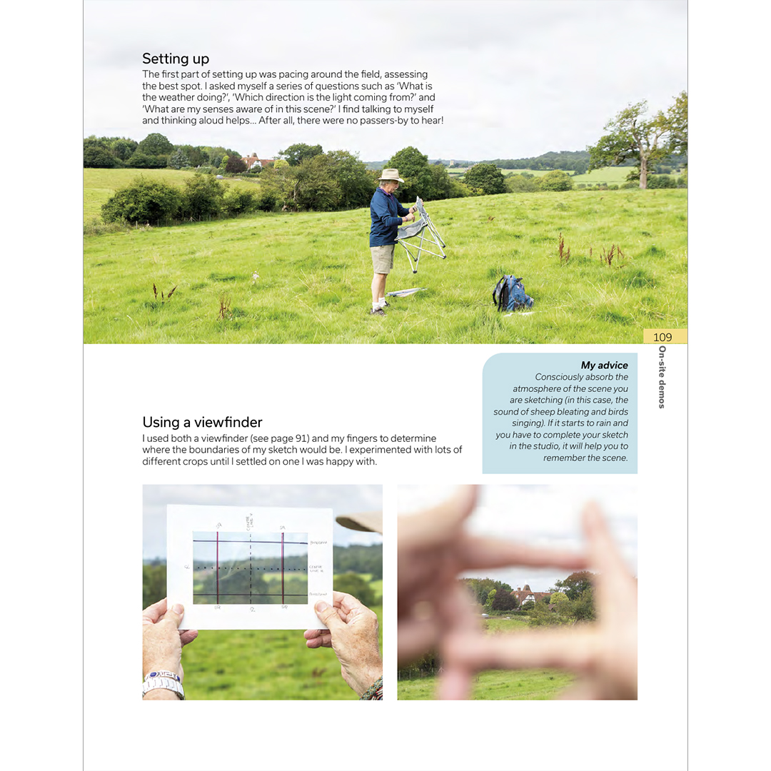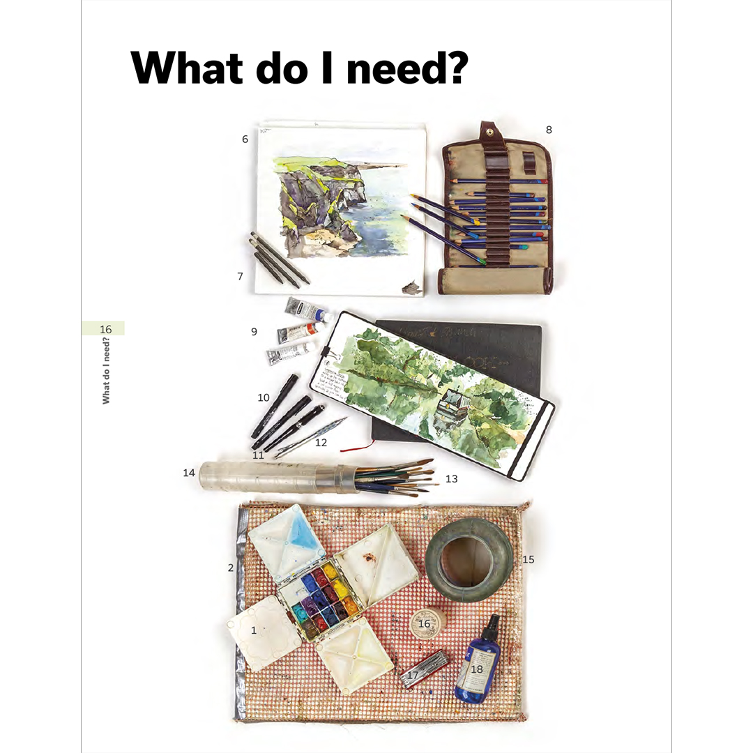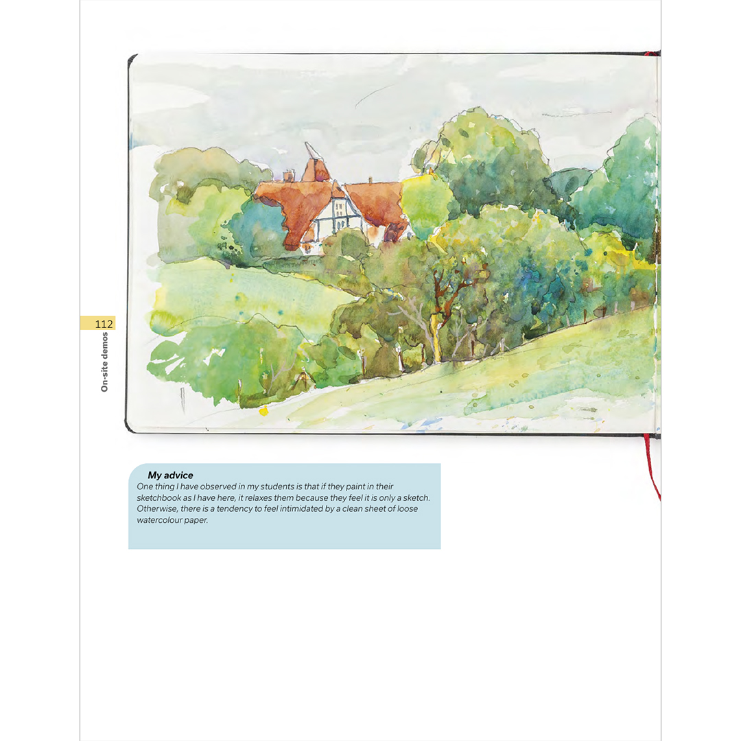 Dit is een handig boek dat je keer op keer zult raadplegen. Het staat vol met inspirerende kunst en bevat vijf demonstraties: een kusttafereel in inkt; een panorama van het platteland in aquarel; een typisch Engels dorp in gouache; een stadsbeeld met lijn en aquarelwassing; en bomen in aquarelpotloden.
