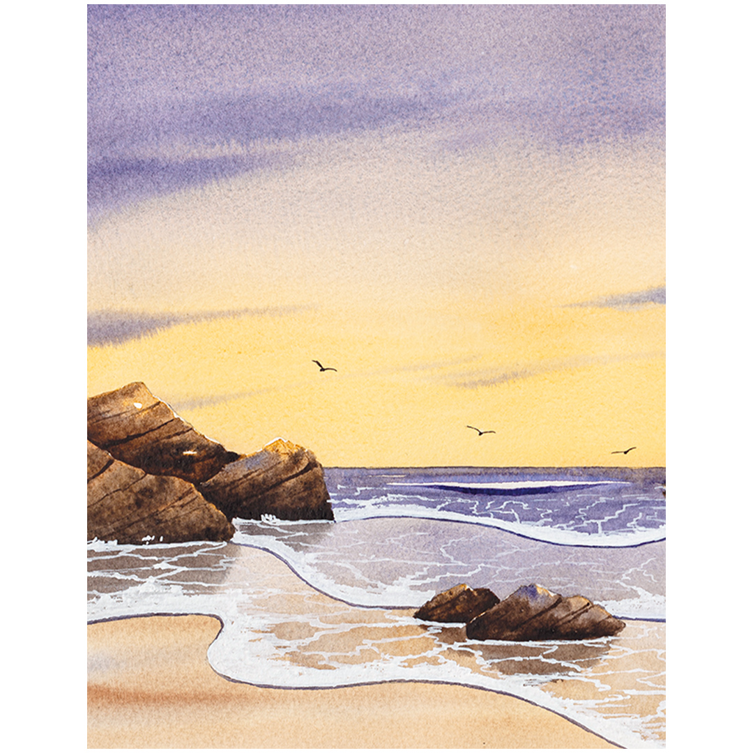 Maak acht prachtige, beginnersvriendelijke stap-voor-stapprojecten – waaronder stormachtige zeeën, watervallen, stille meren en zacht kabbelende golven.