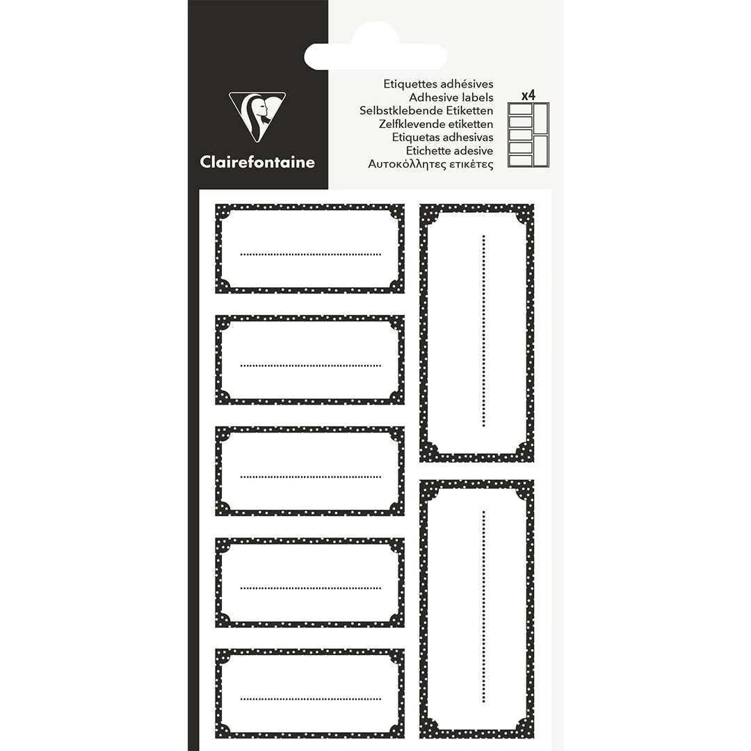 AFMETINGEN: Het zakje meet 8,5 x 16 cm. Het bevat 4 vellen met elk 7 etiketten.
