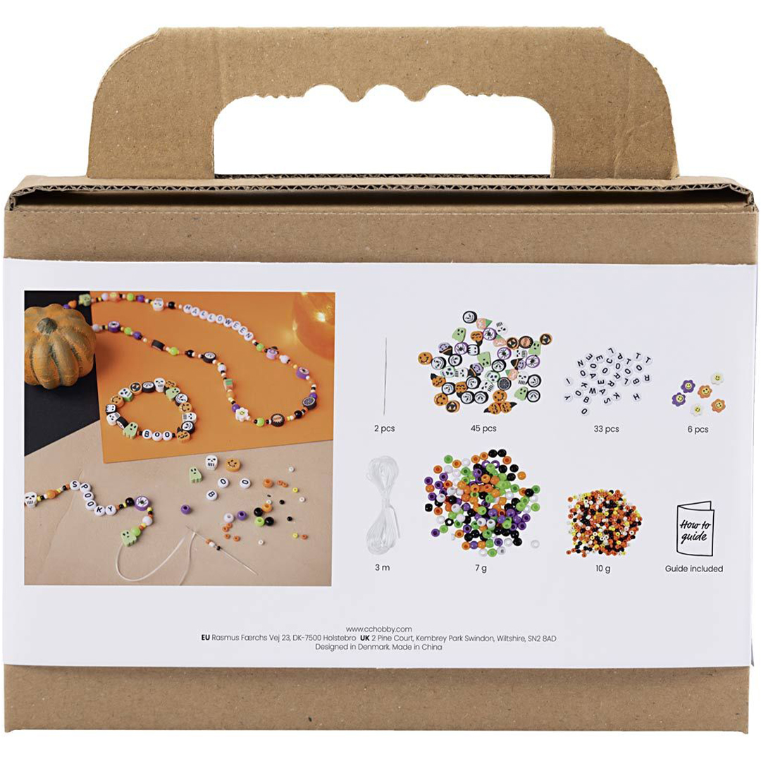 Met een DIY-set van Creative Company kunnen kinderen echte Halloween-sieraden maken – vol kralen, vormen en letters. De set bevat materiaal voor twee kettingen en drie armbanden, plus alle benodigde instructies.