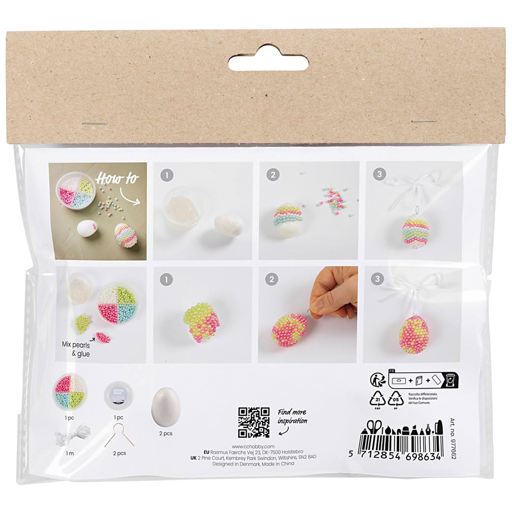 Met dit knutselpakket kun je mooie paaseieren boetseren en kralen voor in de paastakken! Een perfecte gezinsactiviteit die zelfs geschikt is voor de allerkleinsten. Het set bevat al het materiaal en alle instructies die nodig zijn.