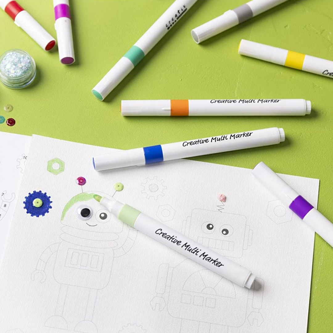 De Multi Marker-pennen kunnen worden gebruikt op materialen zoals steen, hout, glas, canvas, porselein, plastic en metaal. Omdat ze niet permanent zijn, is de verf gemakkelijk af te wassen van niet-poreuze oppervlakken met zeep en water.