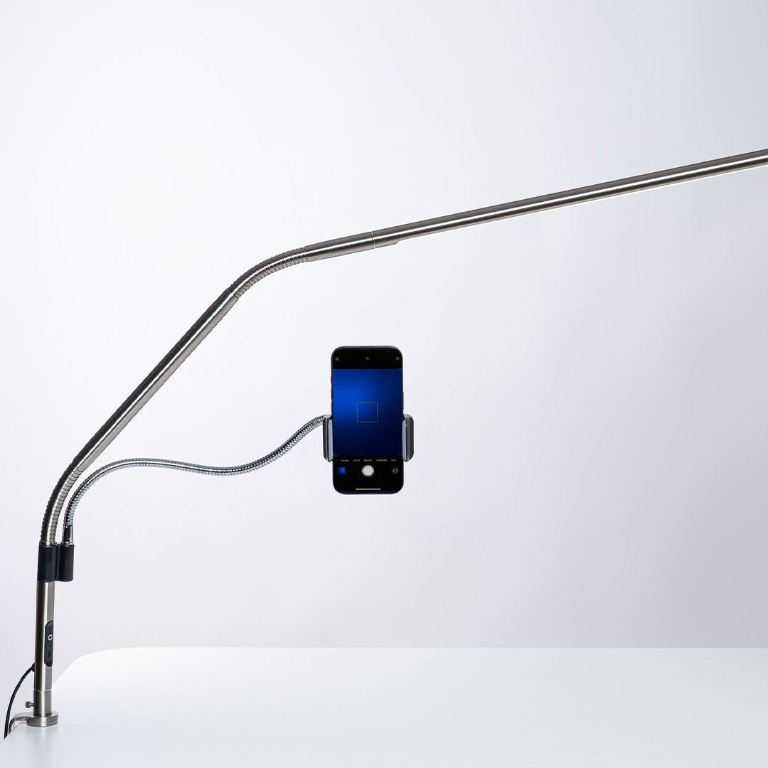 De verstelbare arm maakt eenvoudige en nauwkeurige plaatsing van de telefoon mogelijk, wat het werken aan kleine details of complexe taken vereenvoudigt.