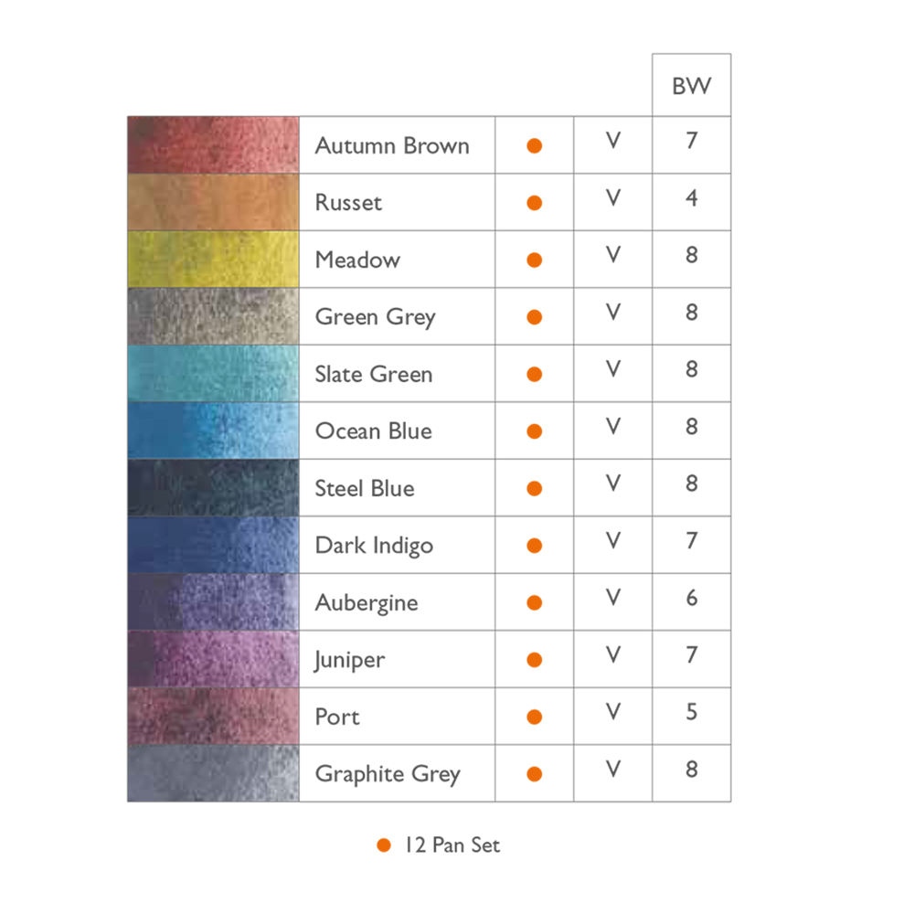 Kleuren: Port, Juniper, Aubergine, Dark Indigo, Steel Blue, Ocean Blue, Slate Green, Green Grey, Meadow, Russet, Autumn Brown, Graphite Grey