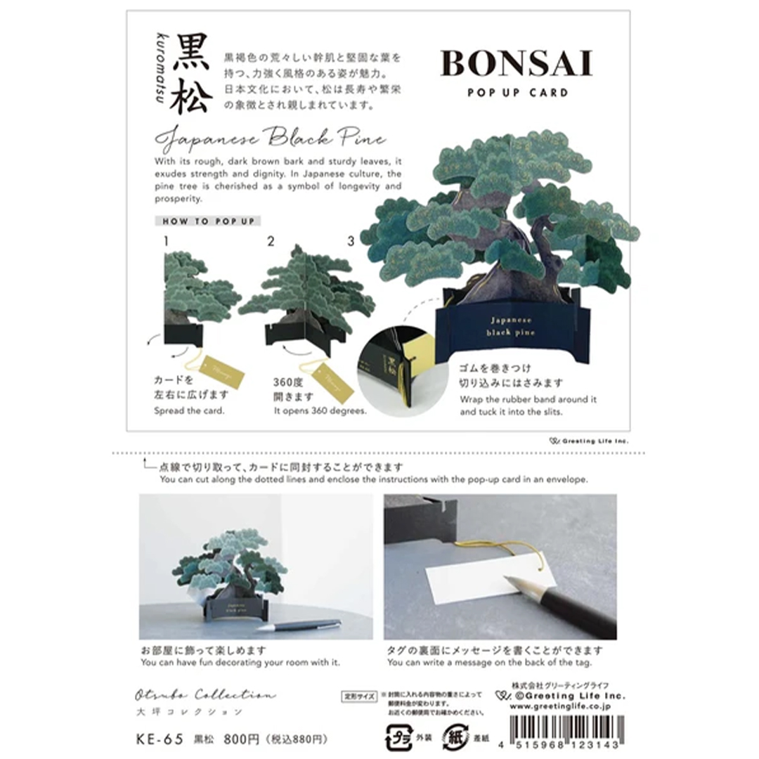 Deze pop-up kaart verandert in een driedimensionale bonsai-boom wanneer deze wordt uitgevouwen. De kaart opent 360° vanuit de gevouwen staat en staat dan open als een mooie decoratie. Het label bevat het woord message. Envelopmaat: H173 x B120 mm