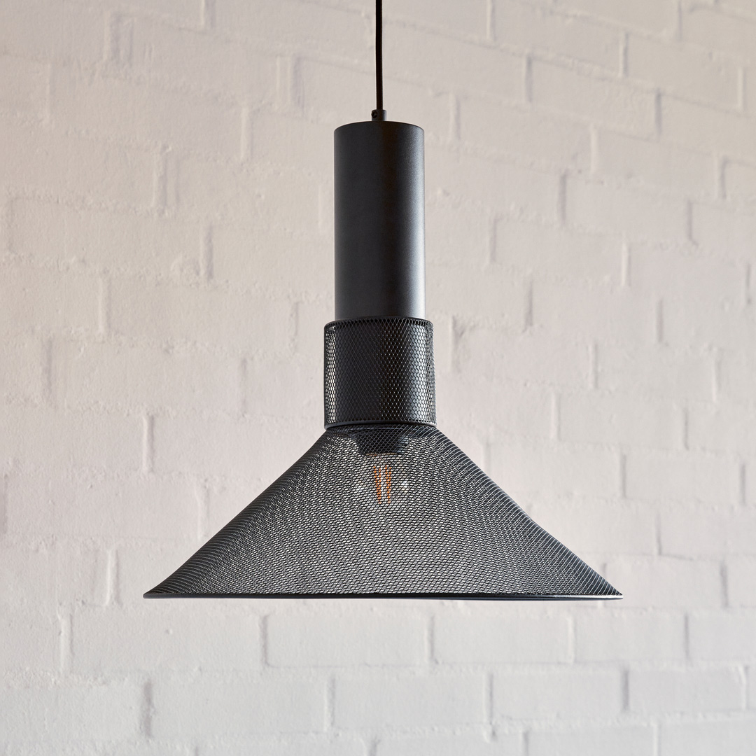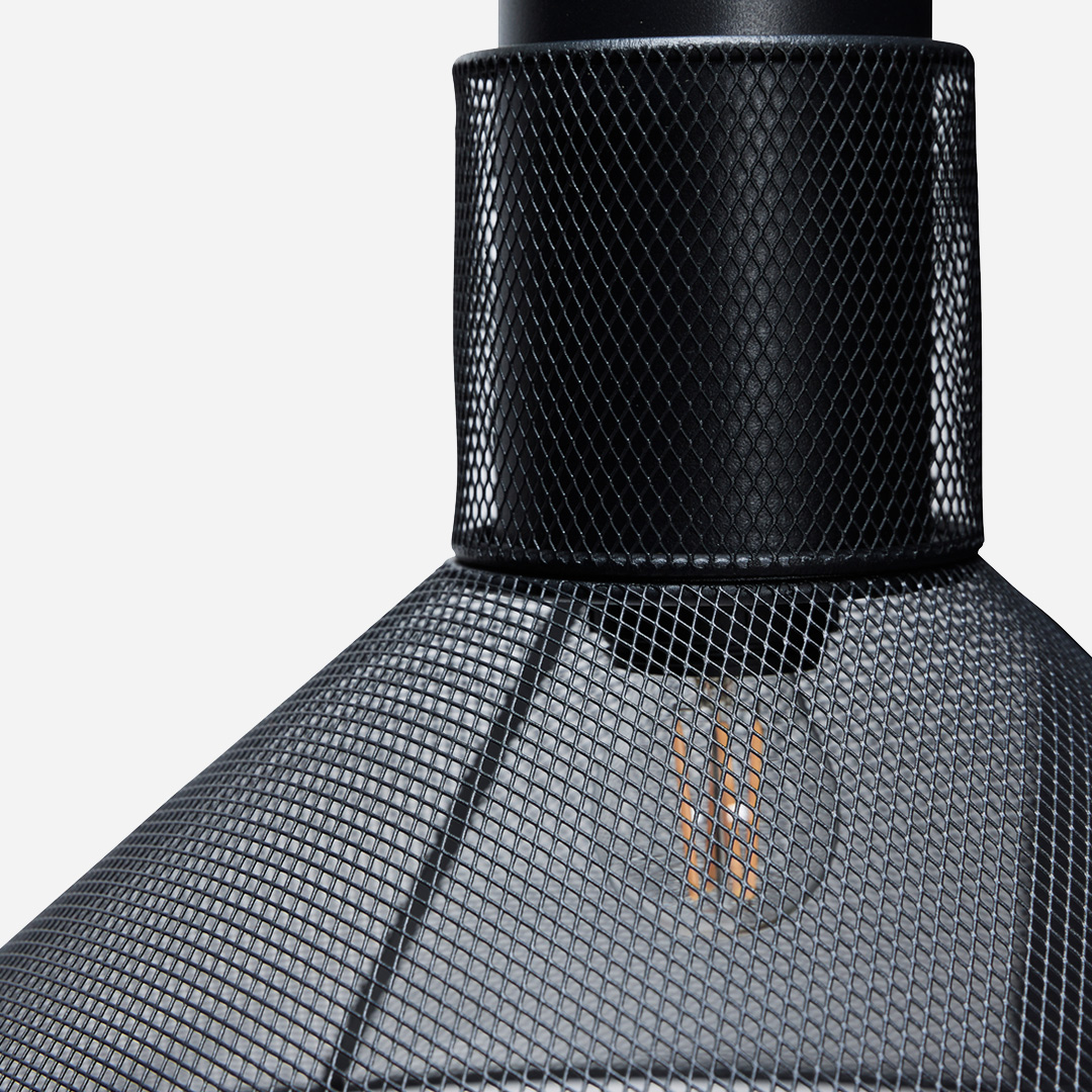 Ray Pendant Black is een indrukwekkende hanglamp van zwart metalen gaas die al snel een echte blikvanger in de ruimte wordt. Wanneer de lamp aan is, ontstaat er een spannend lichtspel waarbij het gaaspatroon decoratieve stralen op muren en plafond werpt. De grafische uitstraling wordt in balans gebracht door een zachter licht, waardoor Ray een harmonieuze keuze is.