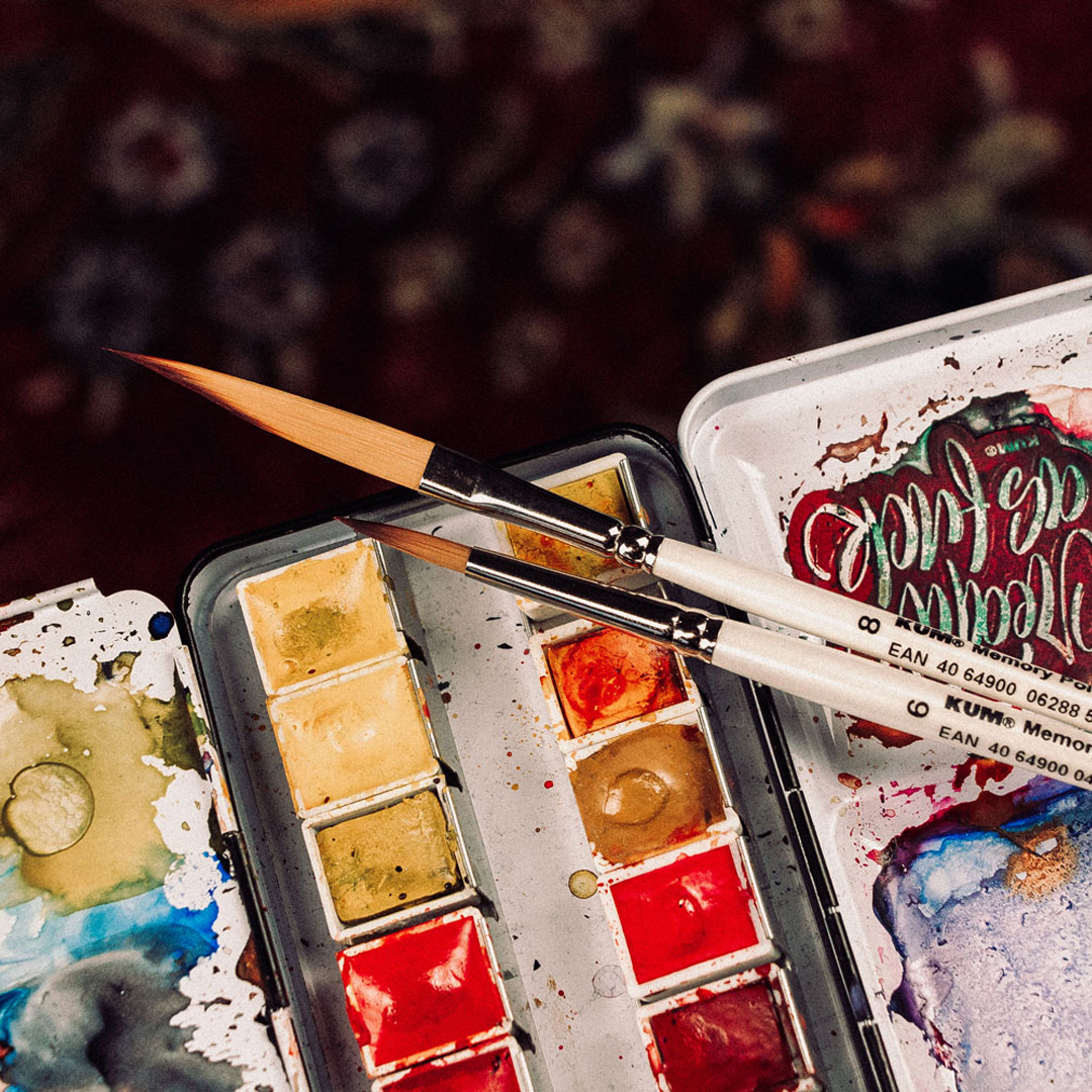 De penselen zijn handgemaakt in Duitsland en verkrijgbaar in een groot aantal maten en met verschillende penseelpunten.
