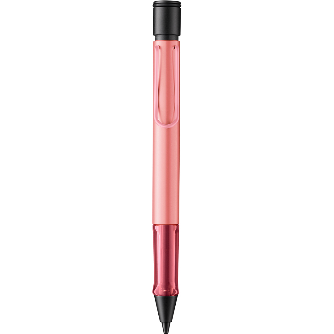 De LAMY AL-Star heeft een geanodiseerd aluminium lichaam en een transparante gripsectie, wat een moderne uitstraling geeft met focus op stijl en schrijfcomfort. De pen heeft een grote, flexibele metalen clip en een ergonomische grip die comfortabel schrijven mogelijk maakt, ook bij langere sessies.