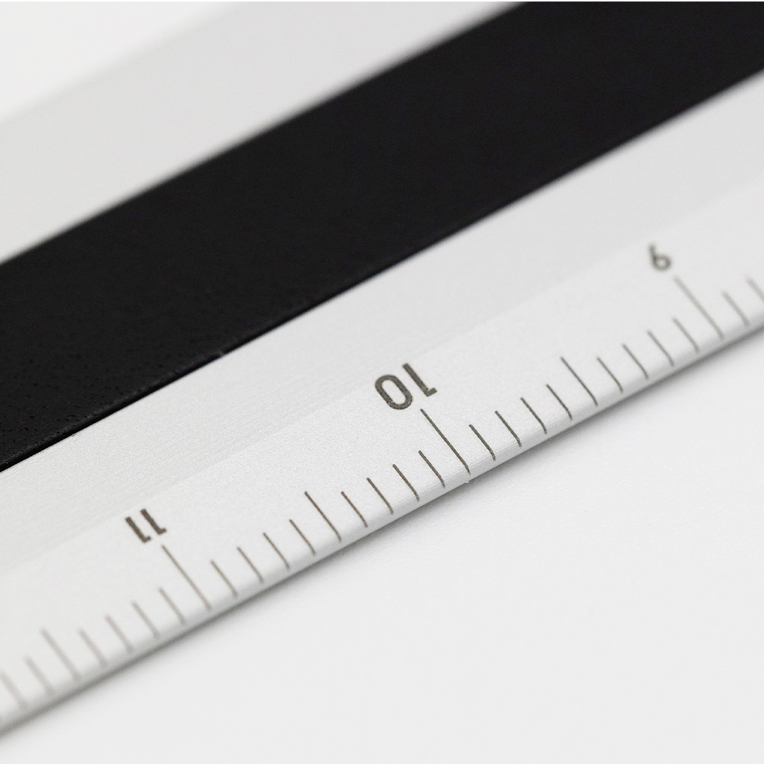 Aluminiumliniaal met exclusief industrieel gevoel van het Japanse LUDDITE Co – stijlvolle liniaal die robuustheid combineert met minimalistisch ontwerp. Gemaakt in Japan door precisiebewerking van massief aluminium voor tijdloze esthetiek en duurzaamheid.