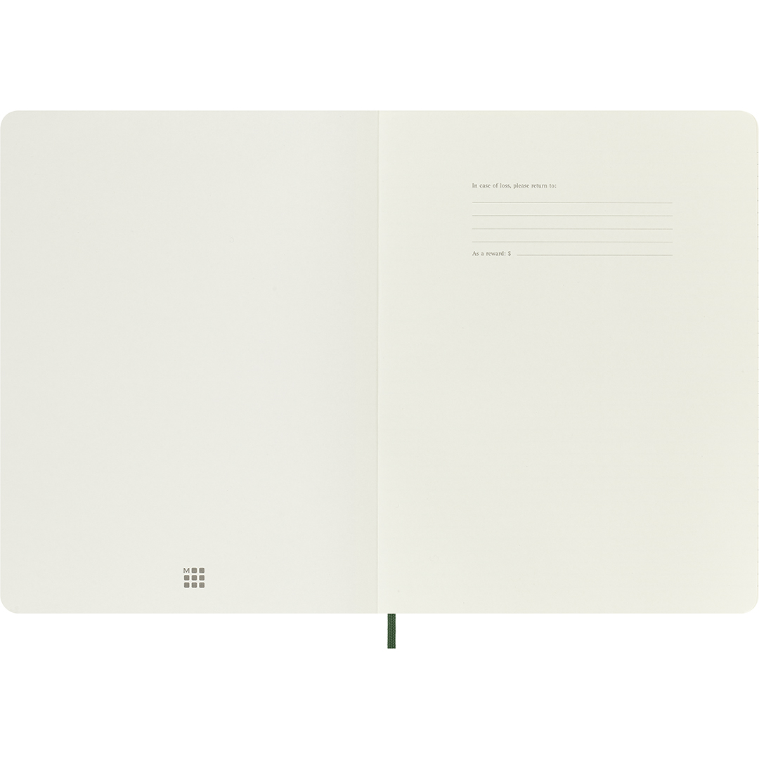 Notitieboek met zacht flexibel kaft in XL-formaat (19 x 25 cm) van het Italiaanse Moleskine. Het notitieboek bevat 192 pagina's en heeft een uitbreidbare binnenzak plus een elastiek dat het boek gesloten houdt wanneer het niet gebruikt wordt. Het ivoorkleurige papier is FSC-g gecertificeerd, zuurvrij en van hoge kwaliteit!