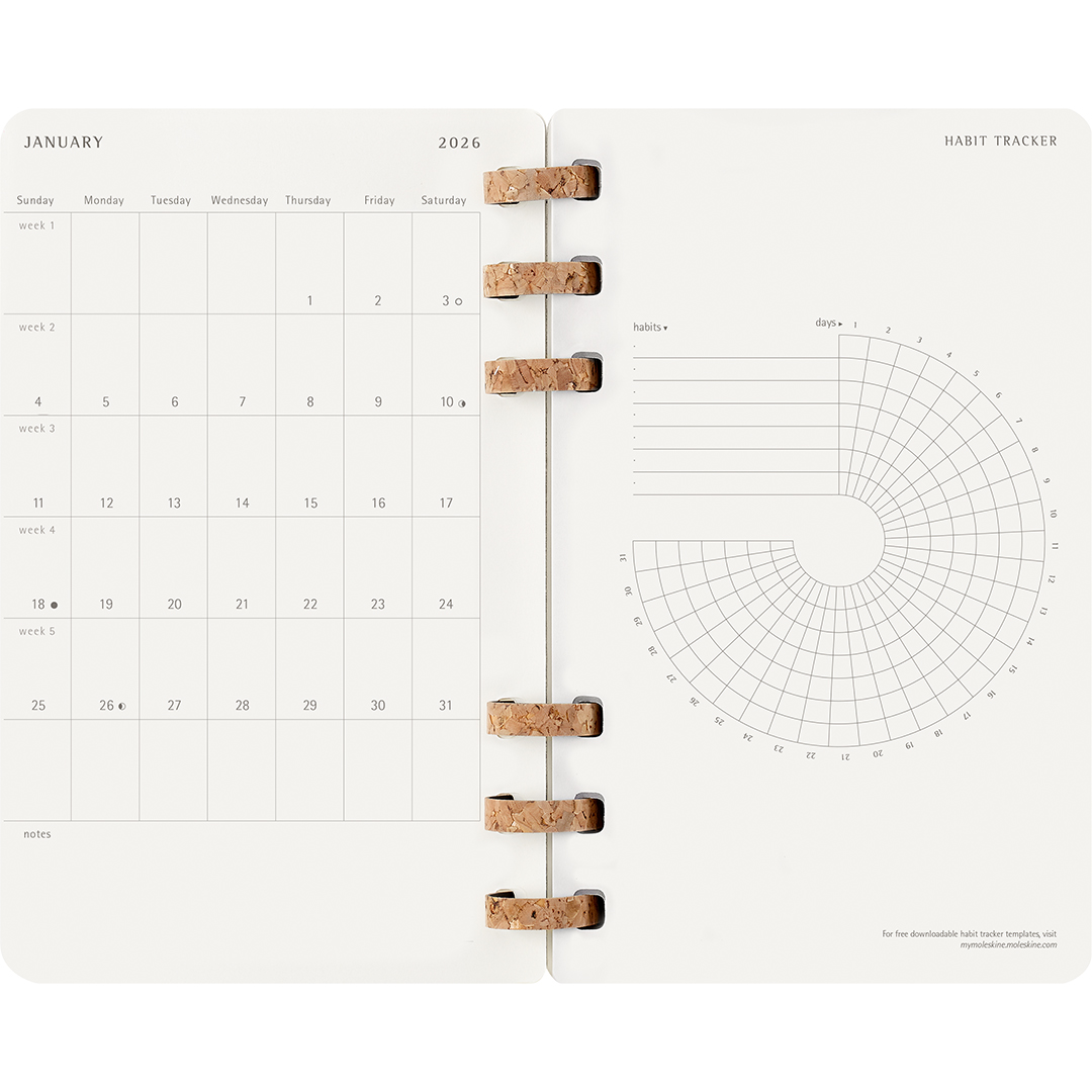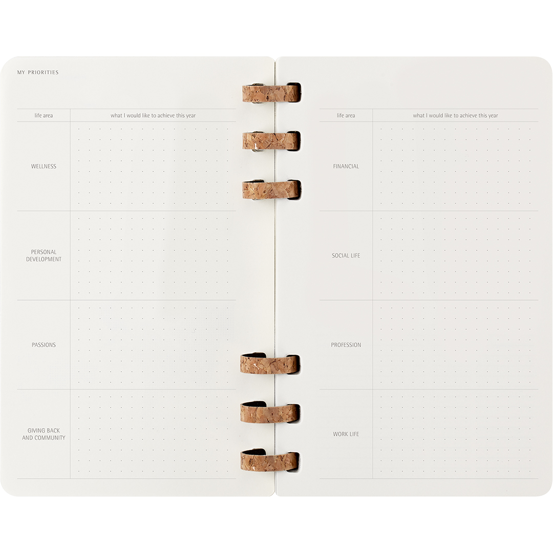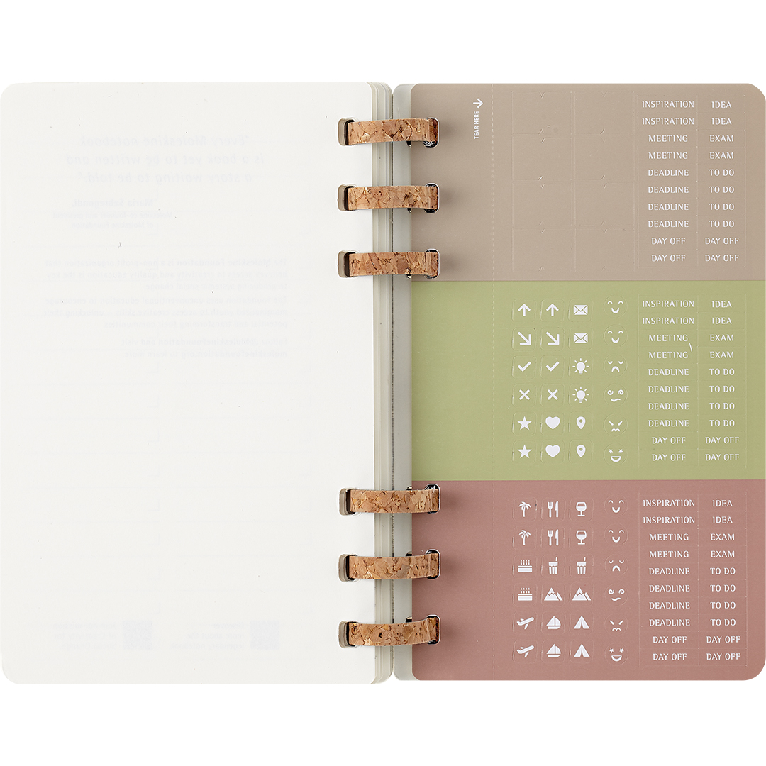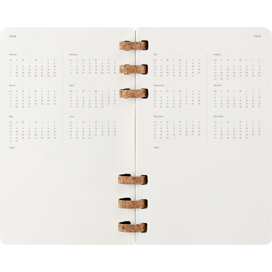 Met een spiraalvormige rug in trendy kurk en gemaakt van milieuvriendelijk, hoogwaardig 100 grams 'Remake'-papier van het Italiaanse bedrijf 'Favini Paper'. Deze kalender combineert maand- en weekplanning, biedt voldoende ruimte om te schrijven en te plannen en is goed ontworpen om het studentenleven te ondersteunen.