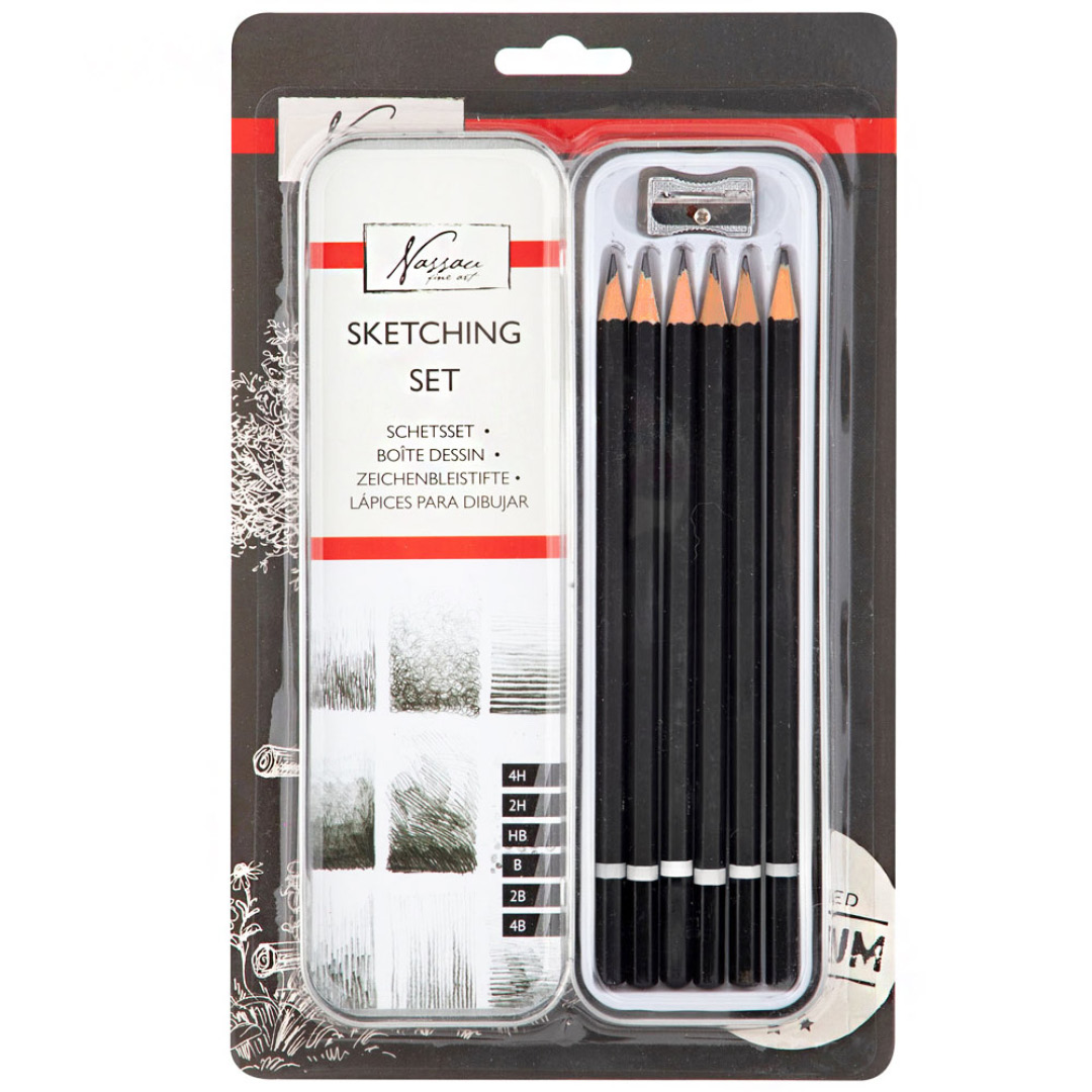 6 potloden (4H, 2H, HB, B, 2B, 4B)