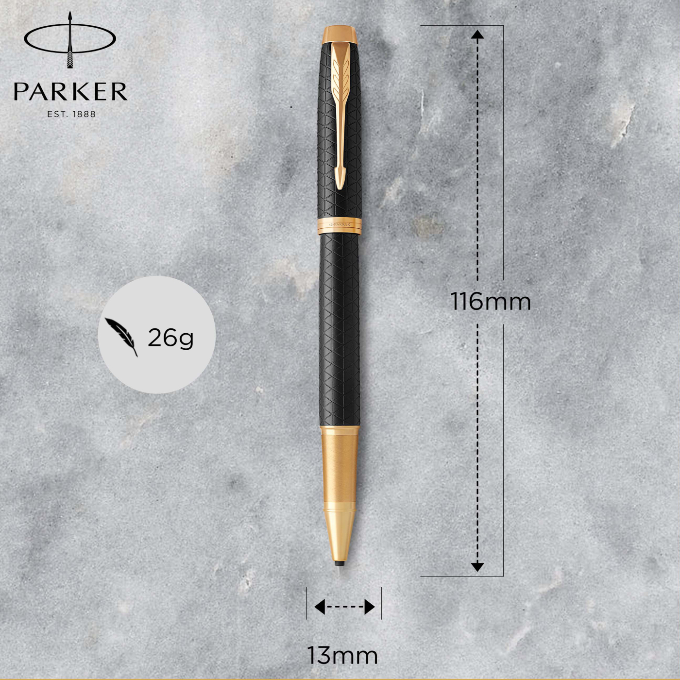 De pen is gemaakt van messing en heeft een balpunt die gelijkmatige lijnen en een zachte schrijfervaring geeft. IM Premium valt op door het gegraveerde patroon op de huls van de pen - de finishing touch voor een pen die even goed geschikt is als cadeau voor een ander als voor jezelf.