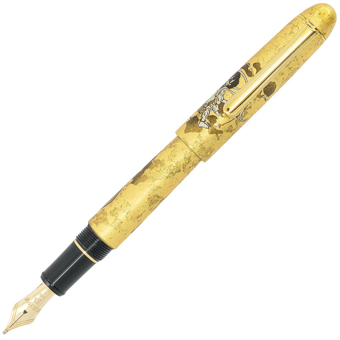 Het ontwerp op elke penhouder is uniek vanwege het proces van handmatig aanbrengen van de patronen; elke Fujin (windgod) en Raijin (dondergod) is subtiel anders. Samen met de volledig unieke toepassing van het bladgoud betekent dit dat geen twee pennen hetzelfde zijn.