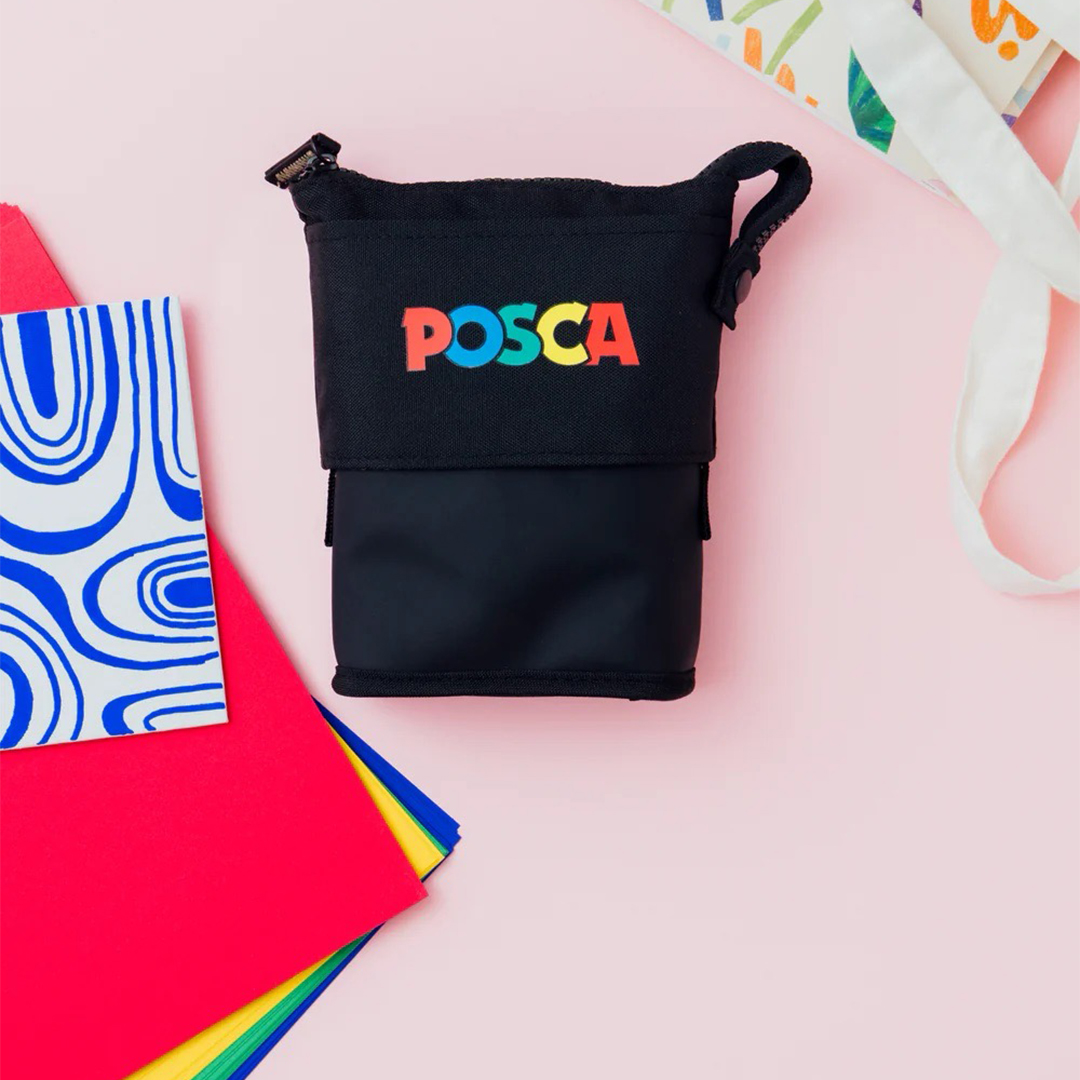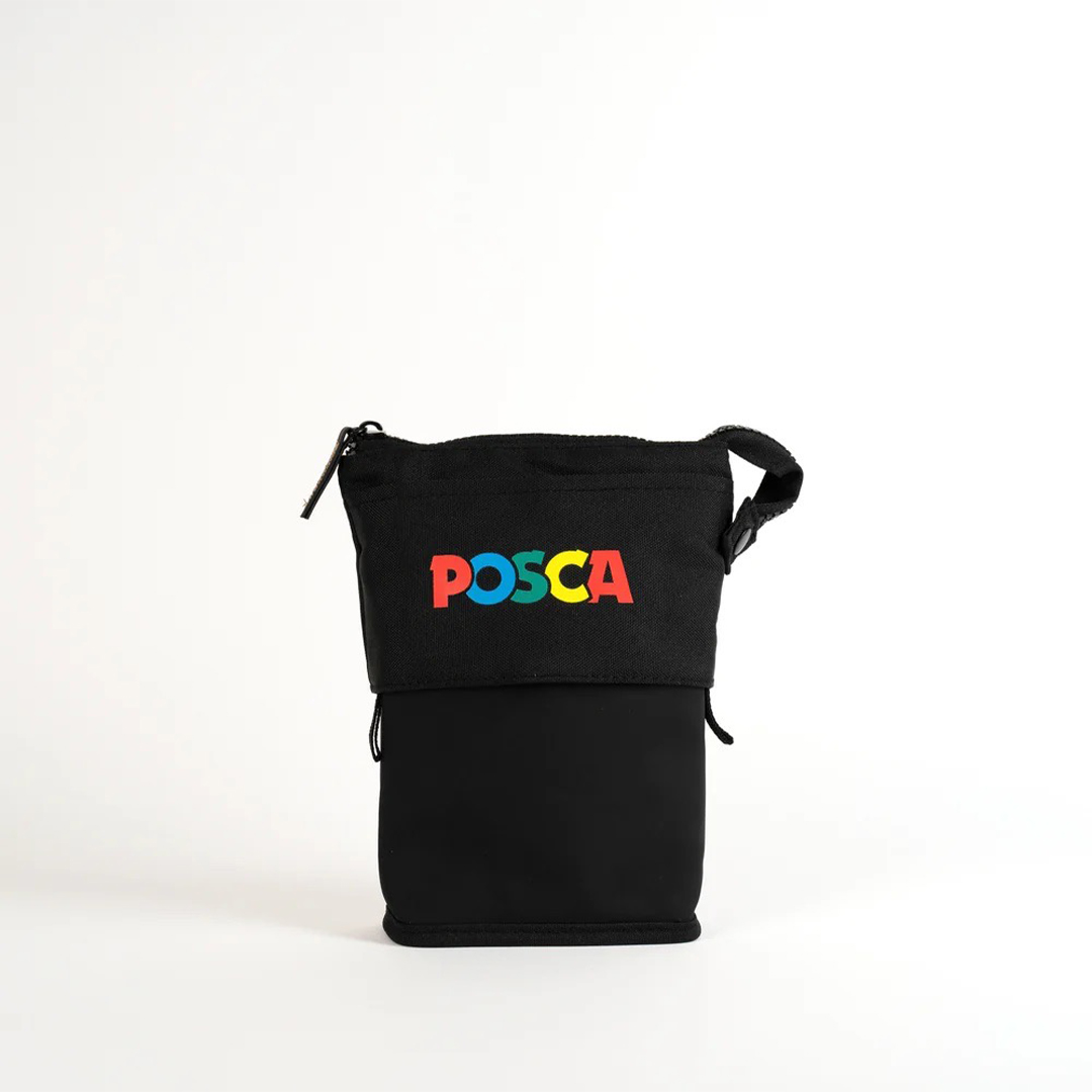 Door de bovenste rand van het penne-etui naar beneden te trekken ontstaat er een stevig penstand. Het biedt plaats aan maximaal 16 Posca PC‑5M.