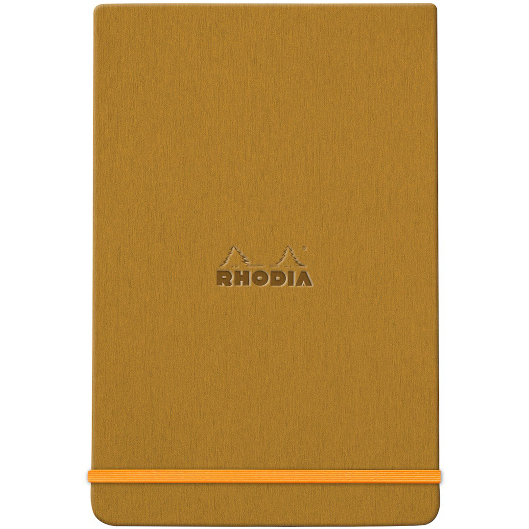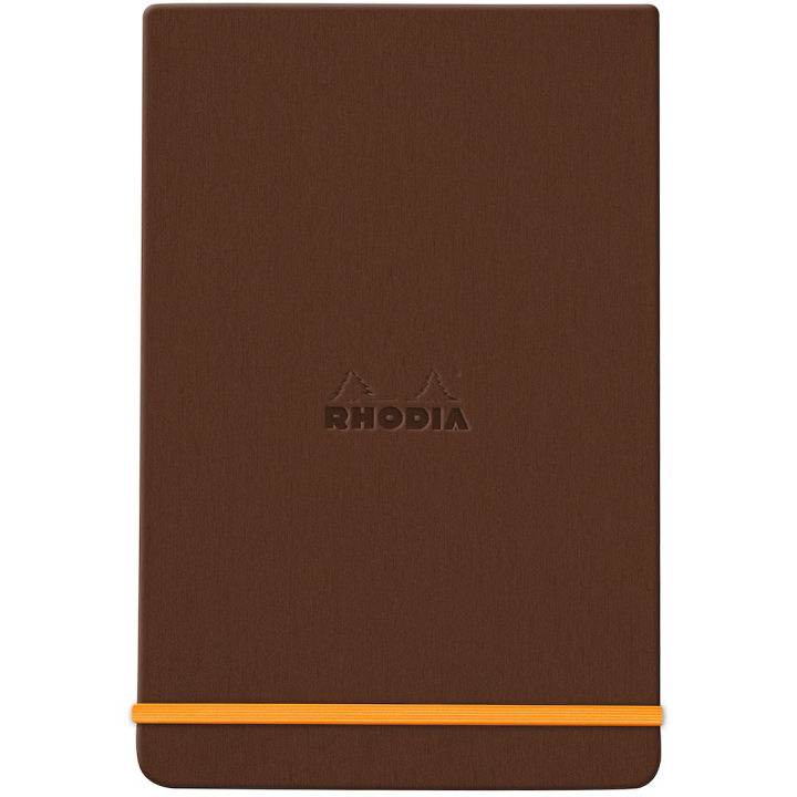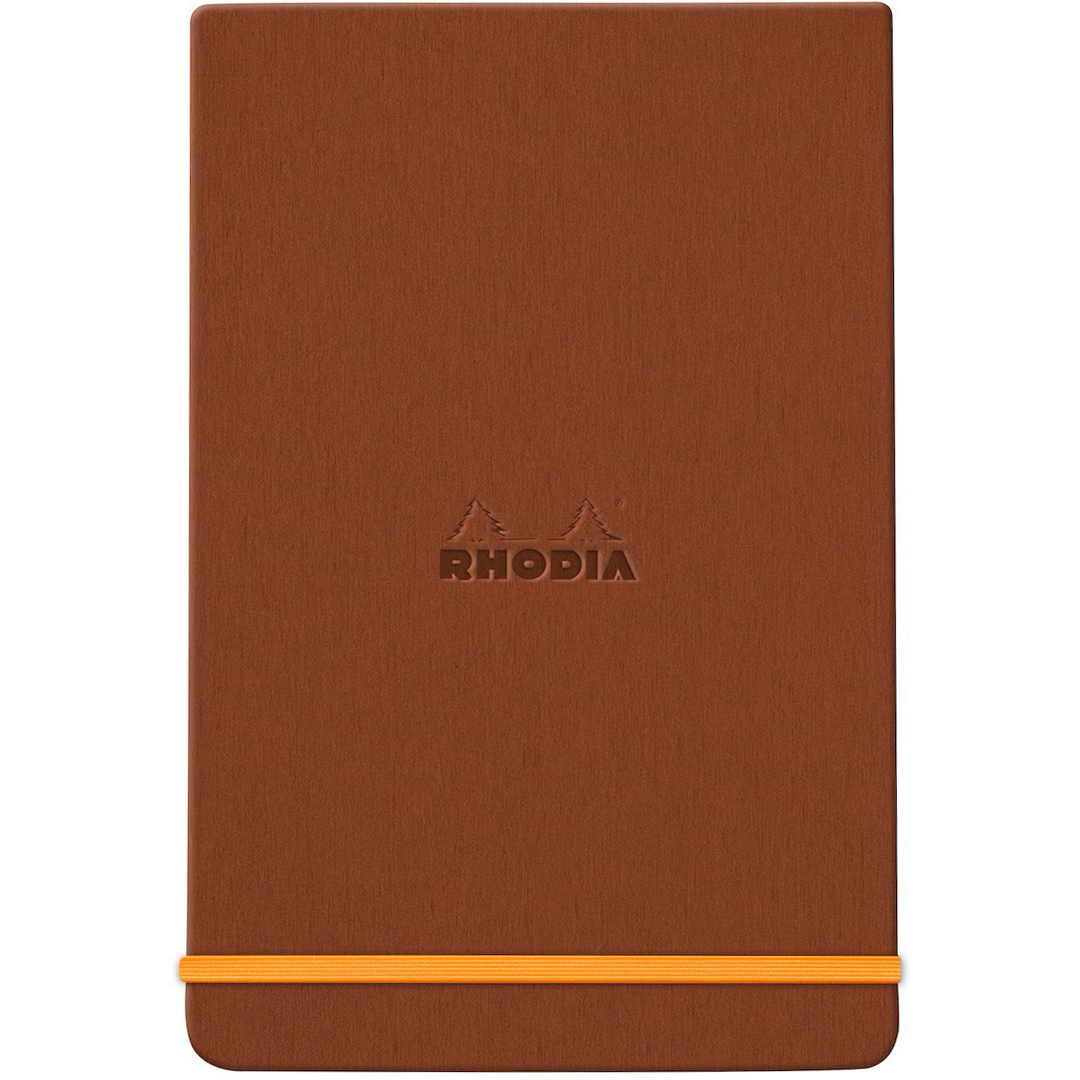 Het boek heeft een harde kaft van Italiaans kunstleer met een reliëflogo van Rhodia, waardoor het een elegante en professionele uitstraling heeft.