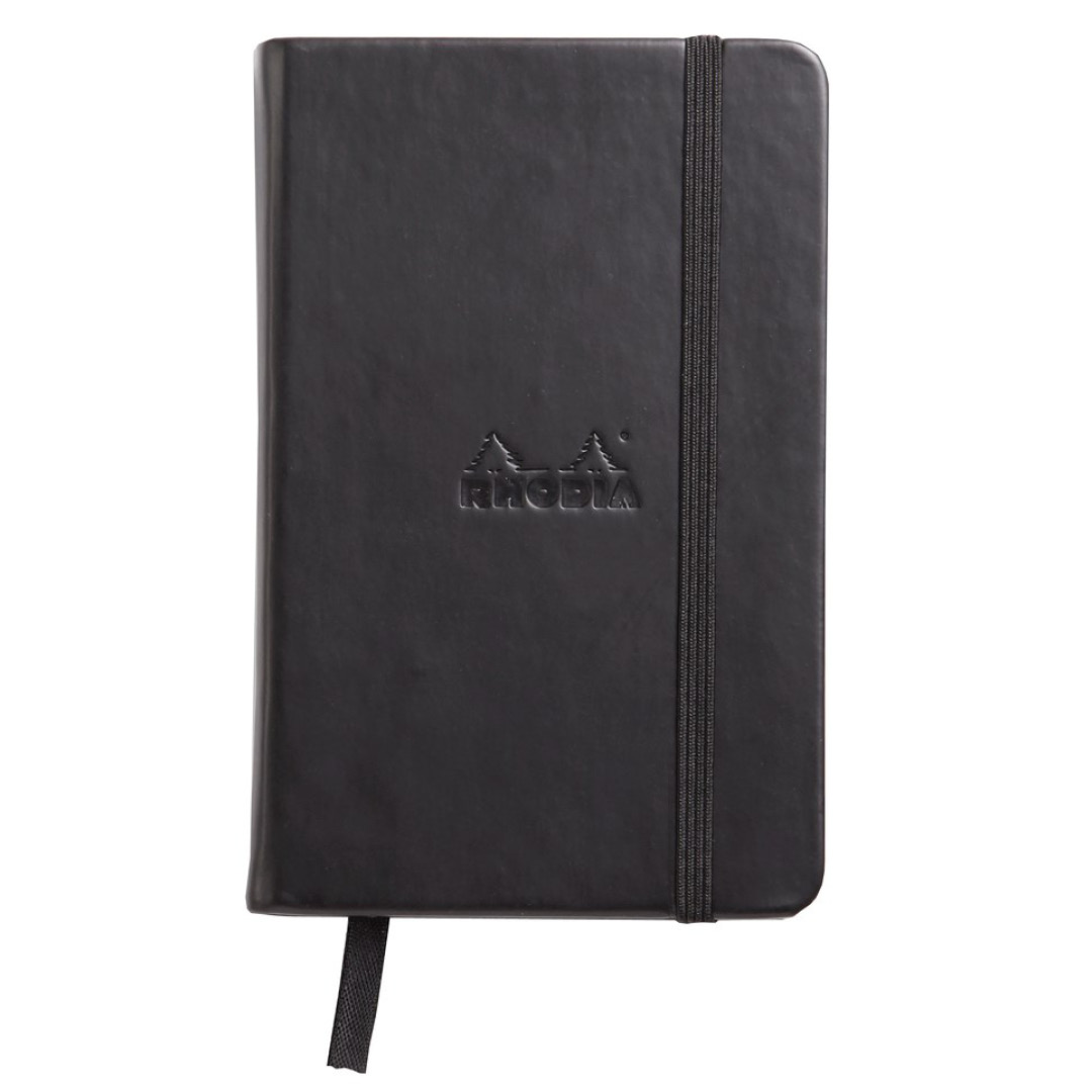 Notitieboek van het Franse Rhodia. Onverslaanbare papierkwaliteit, stevig velijnpapier van Clairefontaine, 90 g/m2. Licht ivoorwit en glad oppervlak dat erg geschikt is voor vloeiende pennen en vulpennen, zonder door te drukken. Stevig ingebonden, omslag van imitatieleer, zwarte elastiek en binnenvak. 192 pagina's, 96 vellen. Formaat: A6. Gelinieerd. "Rhodia Webbie"