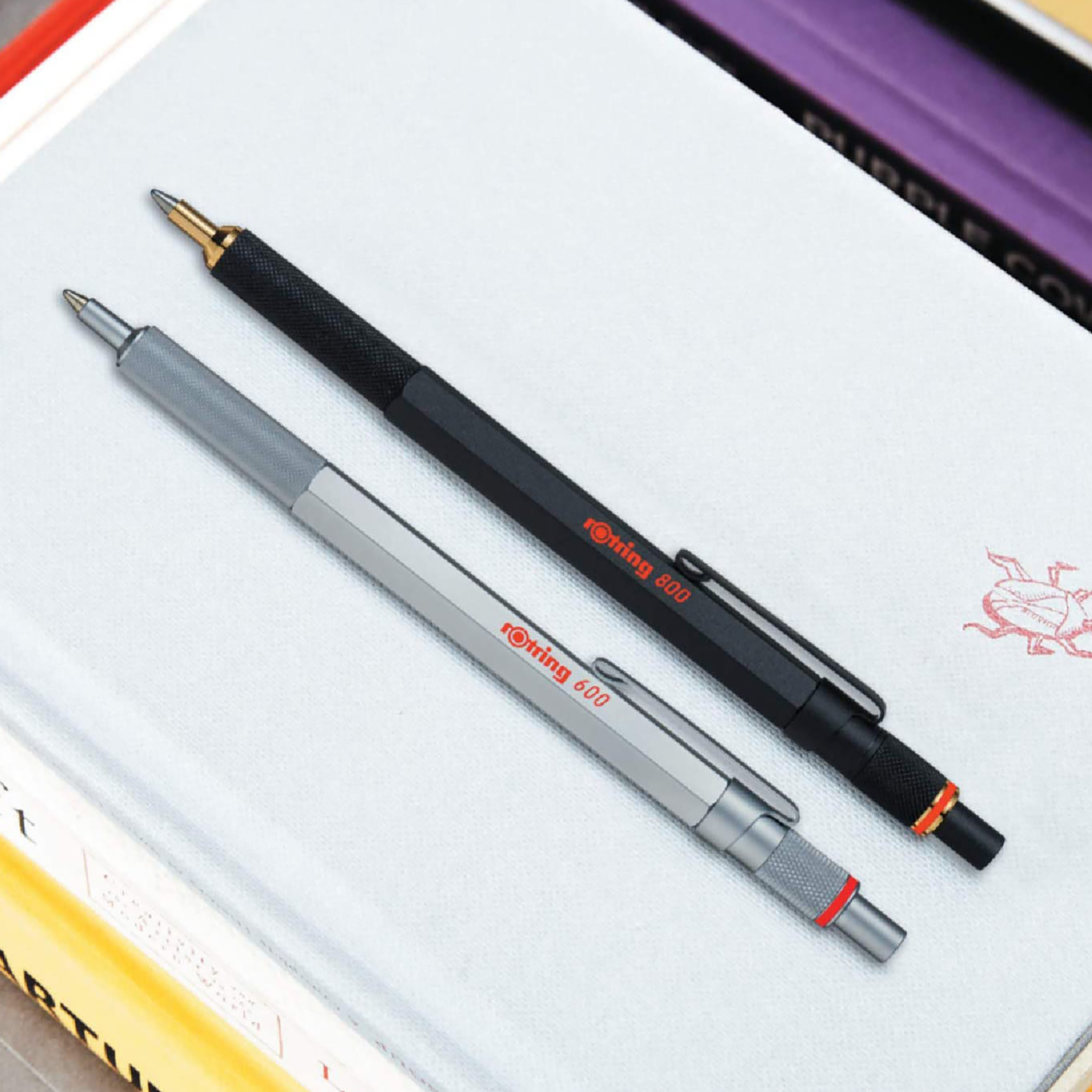 De iconische Rotring 600 straalt het klassieke, maar ook praktische design waar Rotring om bekend staat uit. De bovenkant van de pen is zeshoekig, terwijl de onderkant een ribbelpatroon heeft. Dit zorgt voor een extreem goede grip en verhoogt de precisie. Rotring 600 is de perfecte keuze voor wie een pen nodig heeft die een exacte lijnvoering mogelijk maakt.