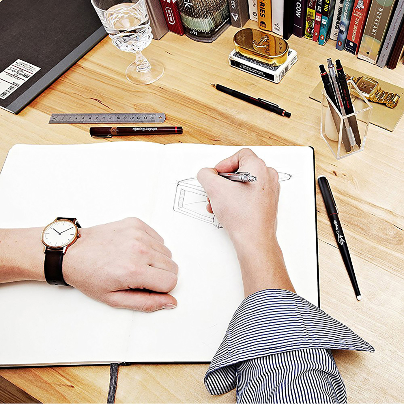 De volgende stap in de evolutie van de klassieke vulpotloden van Rotring. Rotring 800 heeft een vast steunbuisje voor de potloodstift, wat zorgt voor 100% precisie. Het buisje kan bovendien worden ingetrokken met behulp van een draaimechanisme.