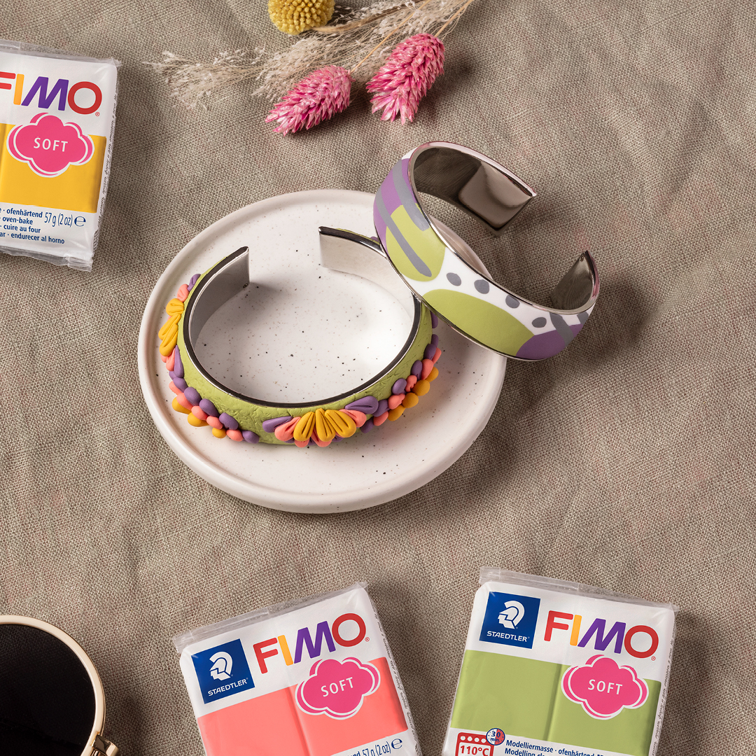 FIMO Soft Clay 8020 wordt geleverd in 30 heldere kleuren die allemaal gemakkelijk te mengen zijn tot de gewenste kleur. De modelleerklei wordt circa 30 minuten in een oven op 110 graden Celsius uitgehard.