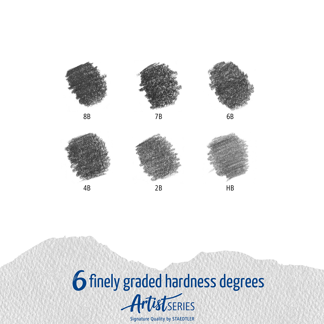 Speciale grafietformule voor resultaten met een metallic glans, verkrijgbaar in een groot aantal grijstinten. Bijzonder geschikt voor schrijven, tekenen, schetsen en arceren, evenals voor professionele grafische en artistieke toepassingen op papier en mat tekenfilm. Uitzonderlijk breukbestendig dankzij de speciale grafietformule. Hout afkomstig uit PEFC-gecertificeerd, duurzaam bosbeheer.