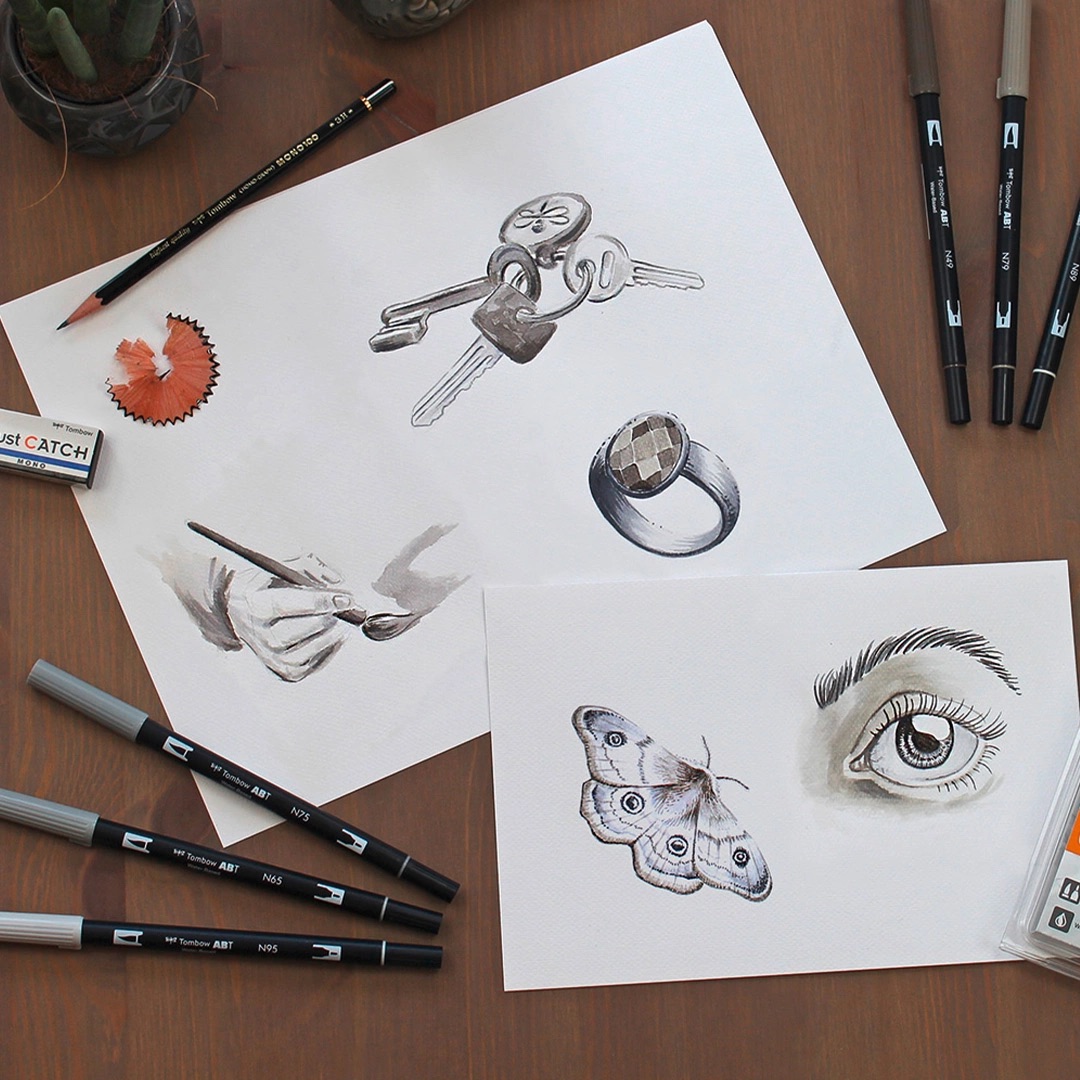 De populaire brushpen heeft twee punten – een smalle en een brede. Elke pen geeft je de mogelijkheid om gemakkelijk te variëren tussen brede en smalle lijnen dankzij de flexibele punten. De kleuren zijn op waterbasis en kunnen met elkaar worden gemengd om specifieke tinten te creëren. De pennen kunnen ook worden gebruikt voor aquarel, kaartontwerp, illustraties, strips, schetsen of inkleuring. Zuurvrij, maar niet lichtecht.