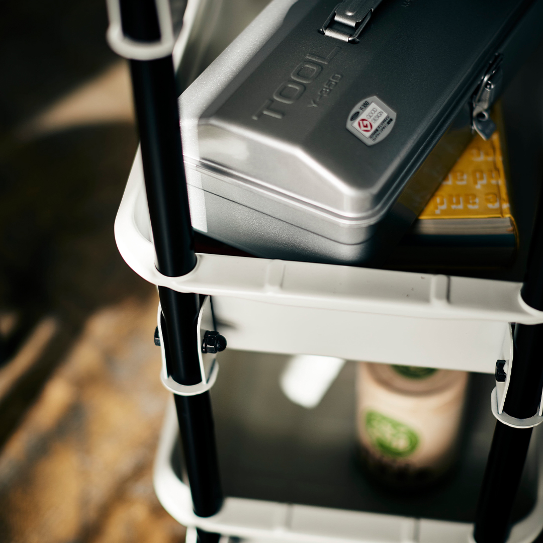 De trolley is gemaakt van een stevige stalen geperste constructie uit één stuk die zorgt voor superieure duurzaamheid en functionaliteit.