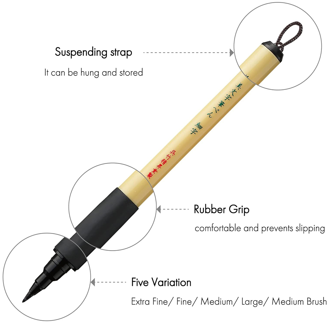 De set bevat vijf door Japan geïnspireerde penseelpennen die perfect zijn voor kalligrafie, lettering, illustratie, tekenen en schetsen. Van gedetailleerde lijnen tot zachte penseelstreken, de verschillende punten bieden onbeperkt creatief potentieel. De set bevat ook een voorgedrukt oefenvel waarop je de unieke effecten van elke pen kunt ontdekken.