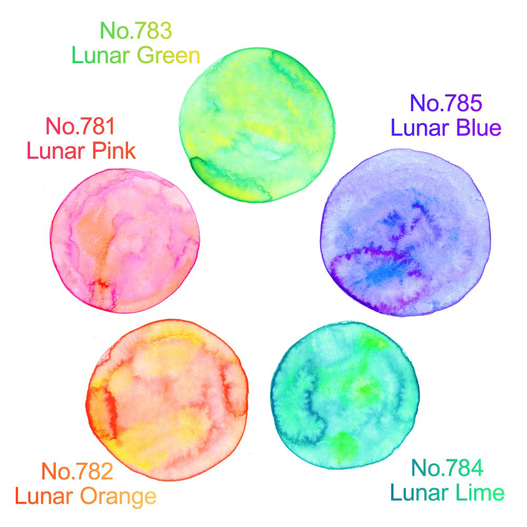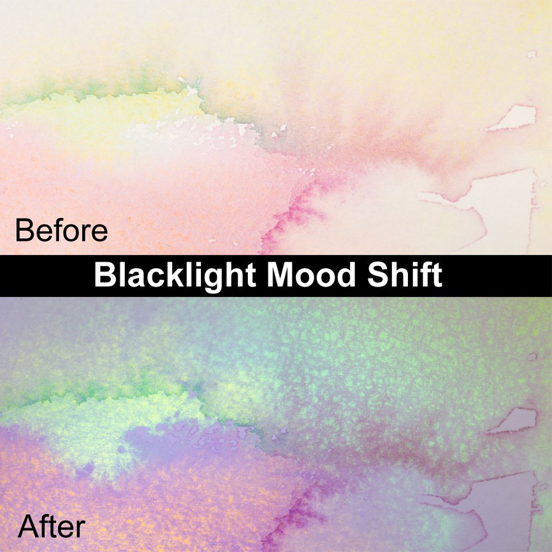 Deze fantastische aquarellverven worden in Japan met de hand gemaakt en geven je illustraties een extra glans en schittering. Daarnaast fluoresceren ze wanneer ze worden blootgesteld aan UV‑licht (zwartlicht).